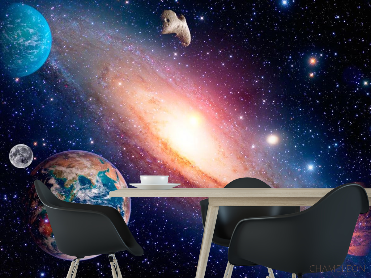 Що ж ще настільки ідеально виглядатиме як в спальні, так і вітальні або дитячій кімнаті? Звичайно ж - модні фотошпалери із зображенням космосу. Вони поєднуються з будь-яким стилем інтер'єру, але найкраще підходять під сучасні оформлення і мінімалізм. Завдяки високій якості друку зображення, ви не тільки можете добитися ефекту занурення в атмосферу, а й зробите кімнату дуже стильною. Фотошпалери космос відрізняються універсальністю і практичністю. Вони добре підходять для маленьких або вузьких кімнат, тому що можуть візуально розширити простір, зробити приміщення більш вільним. Крім того, ви можете купити фотошпалери за низькою ціною в нашому інтернет-магазині Chameleons.