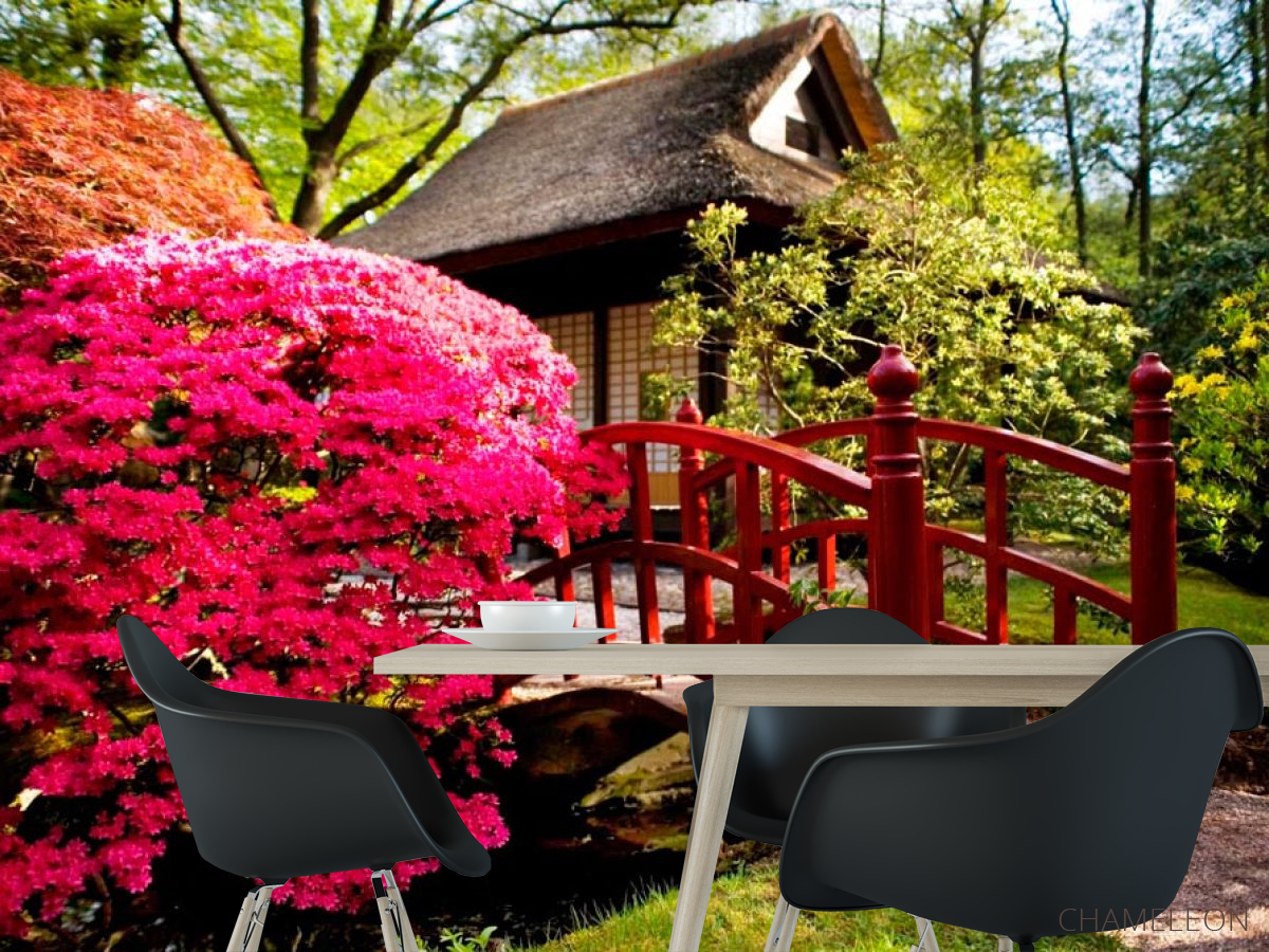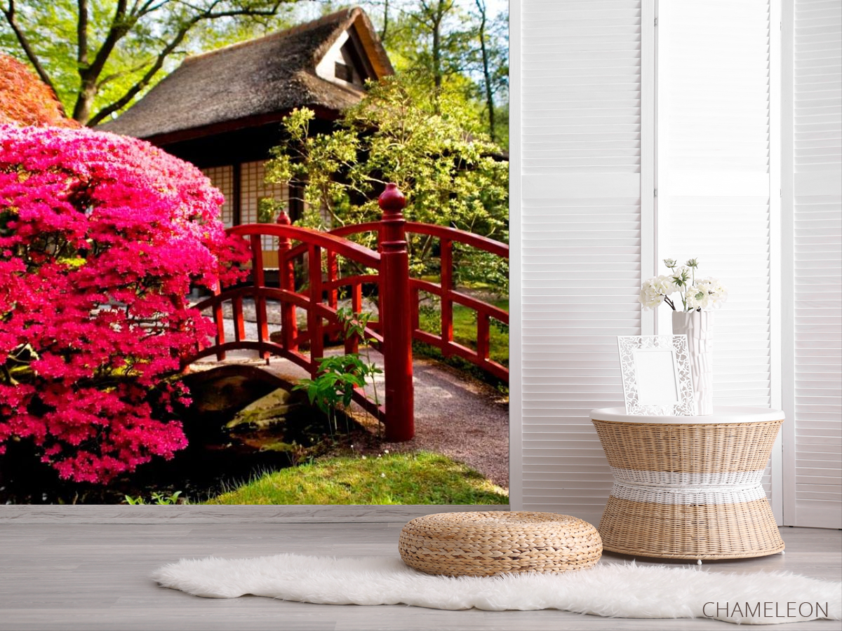 Фотошпалери Будинок, квіти, міст 1435