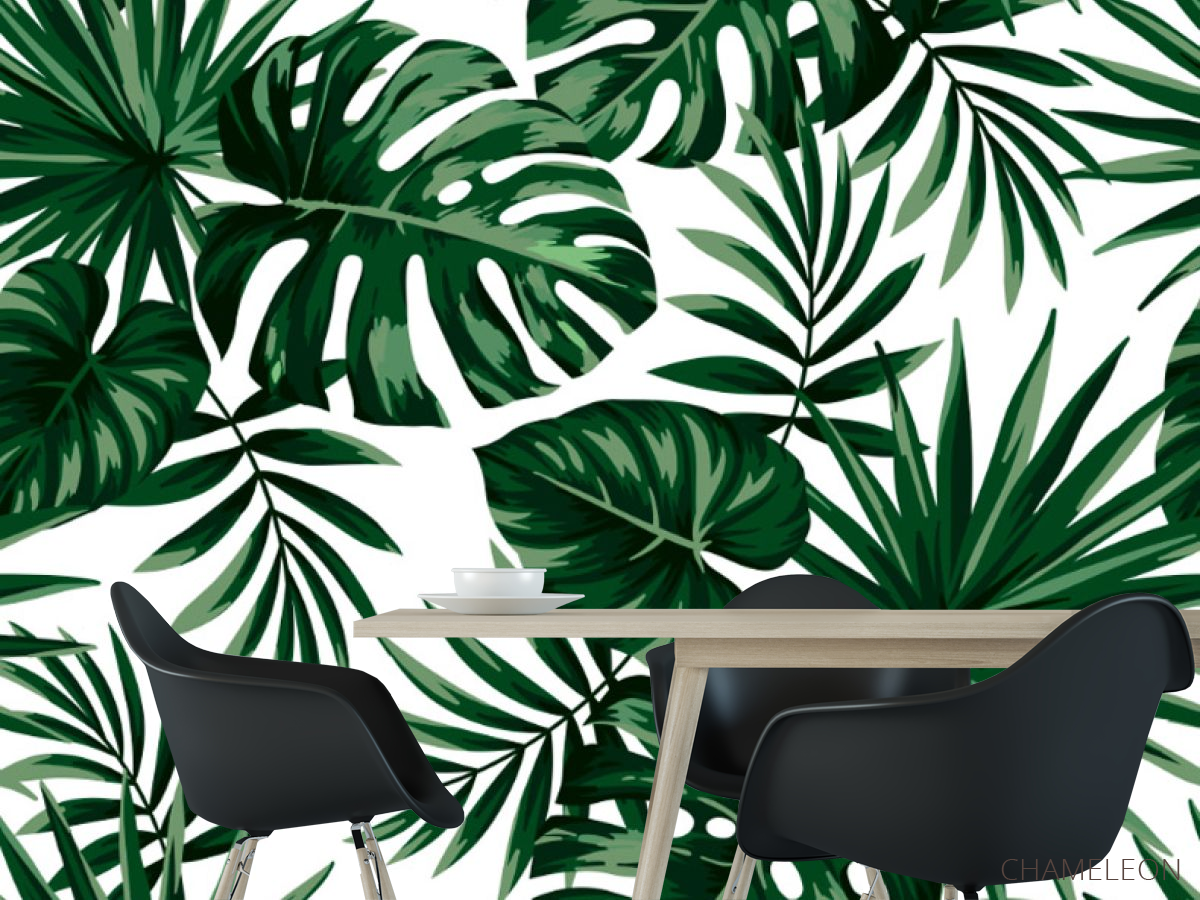 Сучасний інтер'єр в більшості випадків виконаний з пастельних відтінків і часом хочеться внести в них трохи яскравості. Фотошпалери тропічні листя стануть відмінним рішенням для тих, хто бажає розбавити стиль кімнати і надати йому природної бадьорості, барвистості і створити атмосферу жарких країн. Такі шпалери чудово впишуться в обстановку спальні, кухні або вітальні. Фотошпалери Тропічні листя додадуть в будинок комфорту і затишку, а також будуть радувати око протягом багатьох років. Шпалери виготовлені з матеріалів високої якості, не викликають алергію і не вигоряють на сонці. Ви можете вибрати паперову або флізелінову основу, але незалежно від цього, клеїти їх абсолютно легко: достатньо лише нанести клей на стіну і прикріпити полотно.