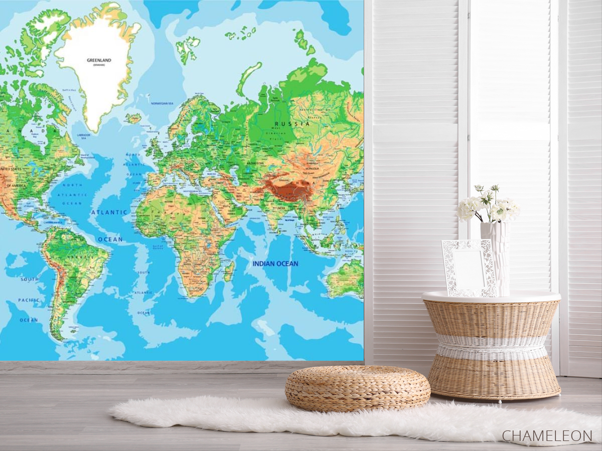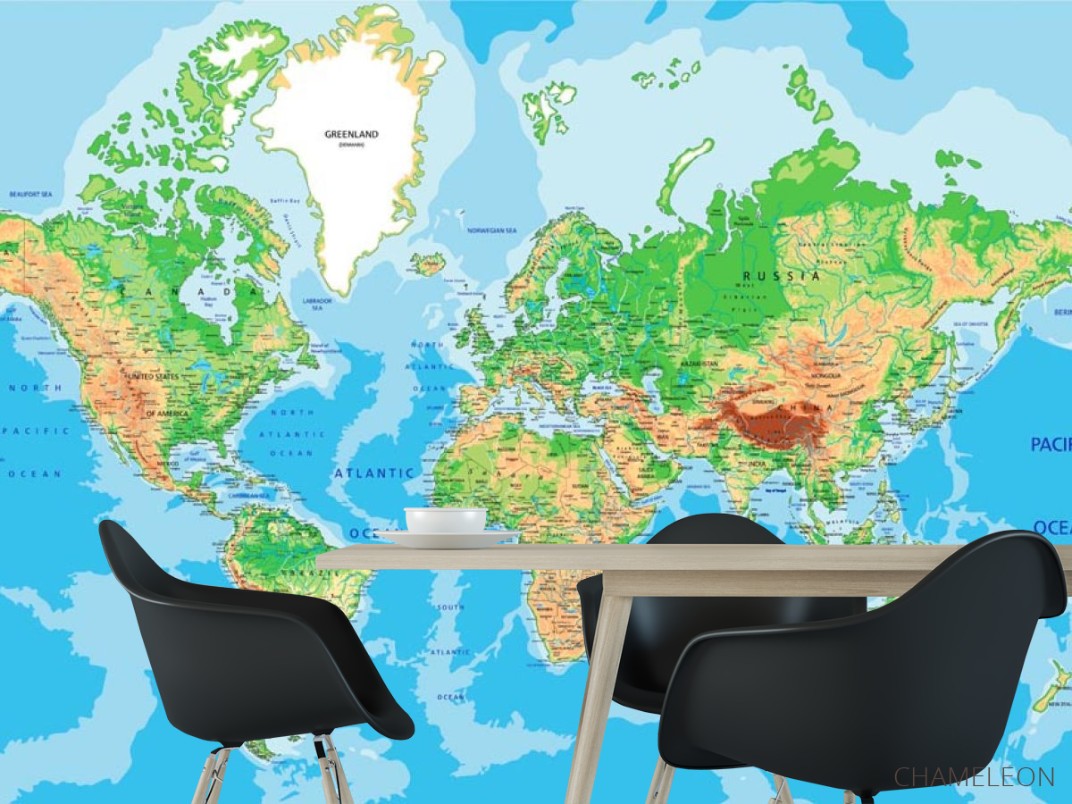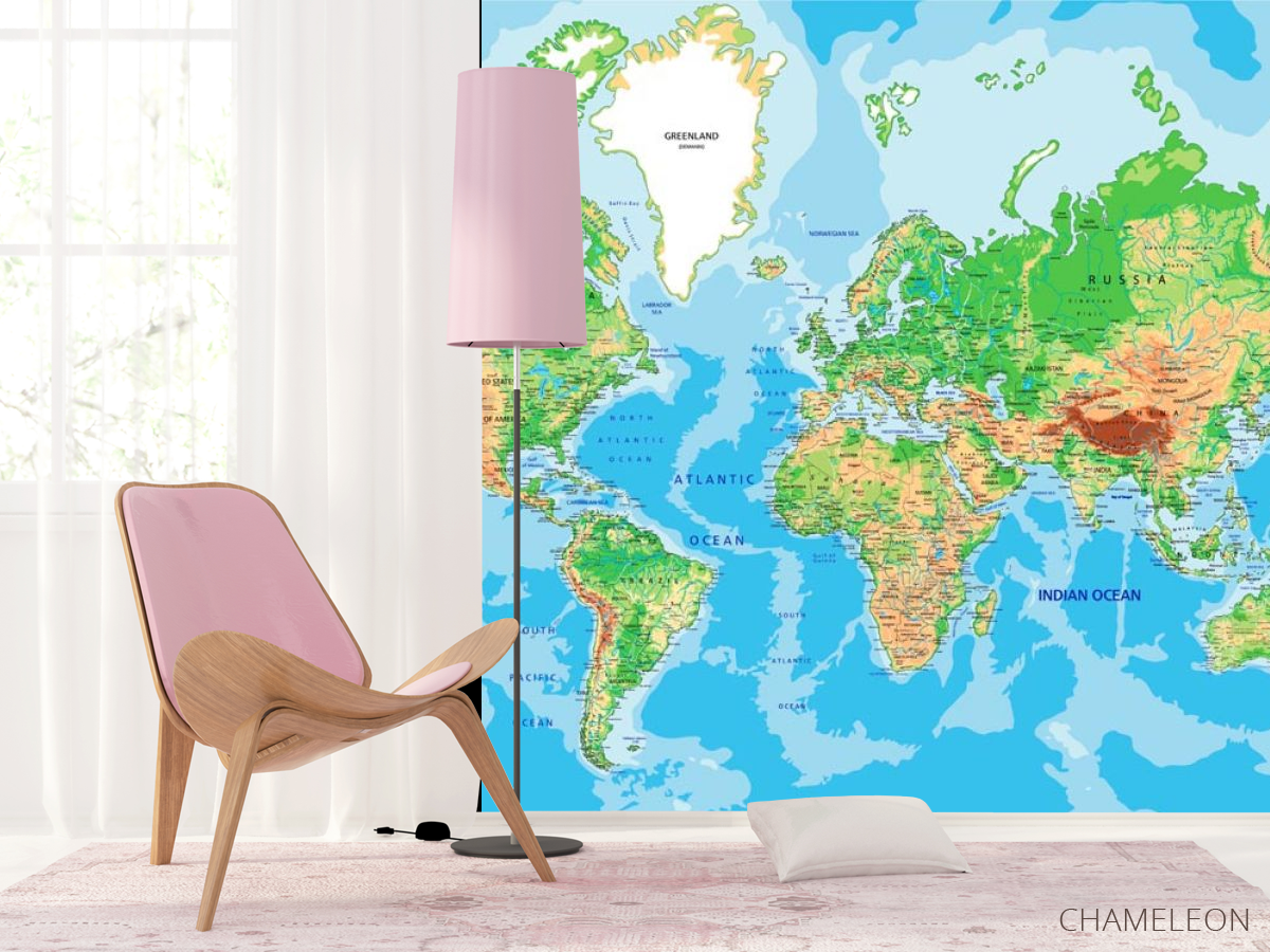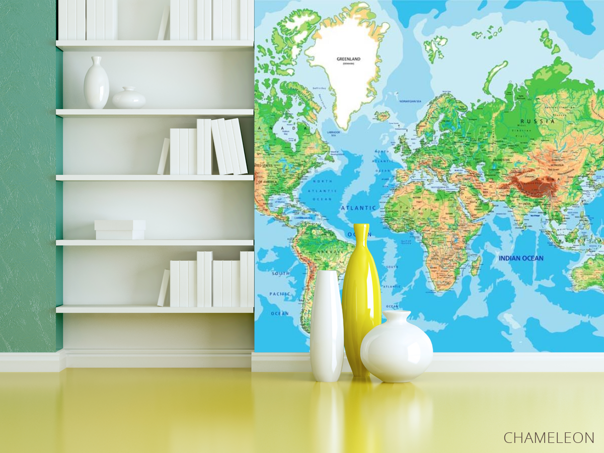 Фотошпалери карта світу є дуже хорошим вибором як для будинку (в вітальню, робочий кабінет або кухню), так і для інших будівель (в школу, ресторан або салон краси). Вони виглядають розкішно, мають стильний дизайн і відмінно підходять під будь-яке оформлення кімнати. Сучасні фотошпалери на стіну виробляються з надійного матеріалу, який не псується і не дряпається. Зображення - це повністю безпечна фарба, яка не викликає алергії, а також залишається красивим протягом багатьох років. Ви можете впевнено використовувати шпалери, які прикрасять будь-яке приміщення. Купити стильні і оригінальні фотошпалери з картою світу можна в інтернет-магазині Chameleons.