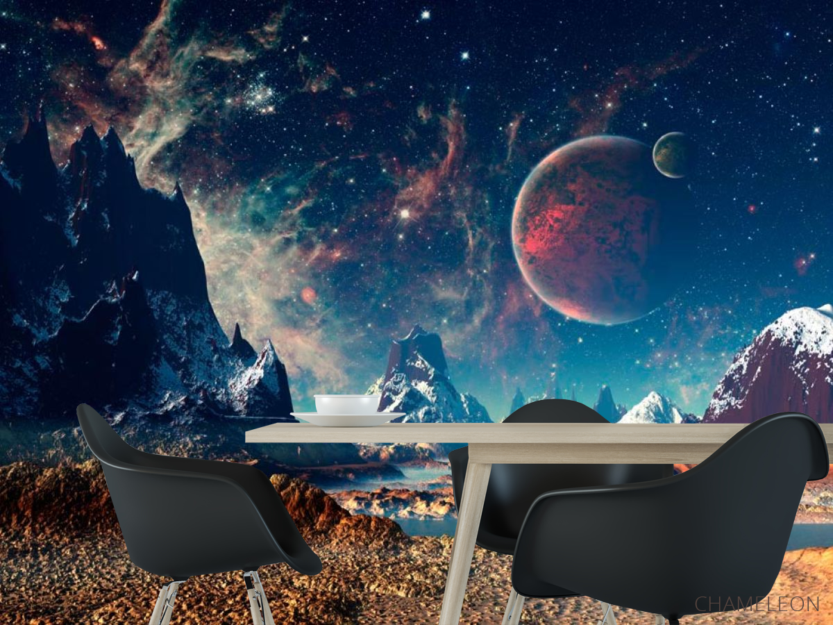 Що ж ще настільки ідеально виглядатиме як в спальні, так і вітальні або дитячій кімнаті? Звичайно ж - модні фотошпалери із зображенням космосу. Вони поєднуються з будь-яким стилем інтер'єру, але найкраще підходять під сучасні оформлення і мінімалізм. Завдяки високій якості друку зображення, ви не тільки можете добитися ефекту занурення в атмосферу, а й зробите кімнату дуже стильною. Фотошпалери космос відрізняються універсальністю і практичністю. Вони добре підходять для маленьких або вузьких кімнат, тому що можуть візуально розширити простір, зробити приміщення більш вільним. Крім того, ви можете купити фотошпалери за низькою ціною в нашому інтернет-магазині Chameleons.