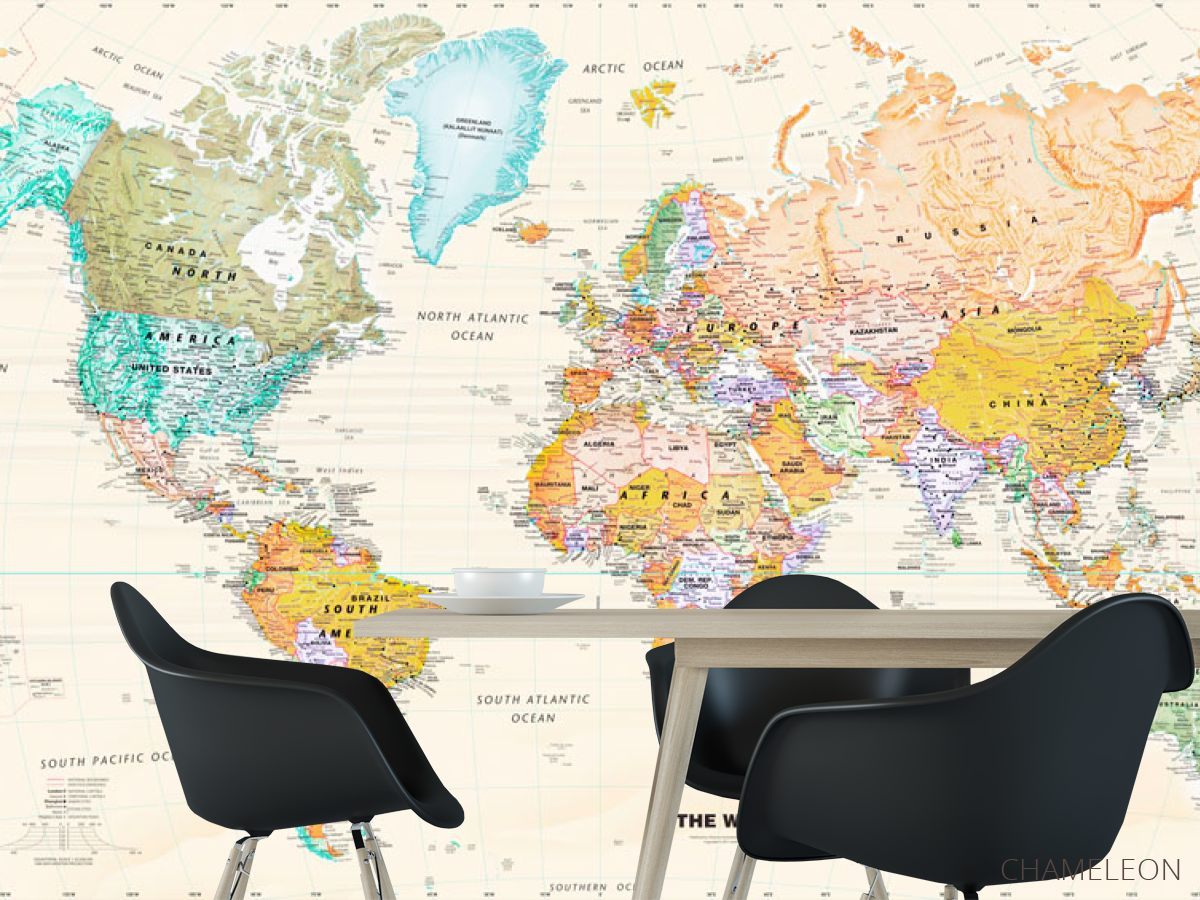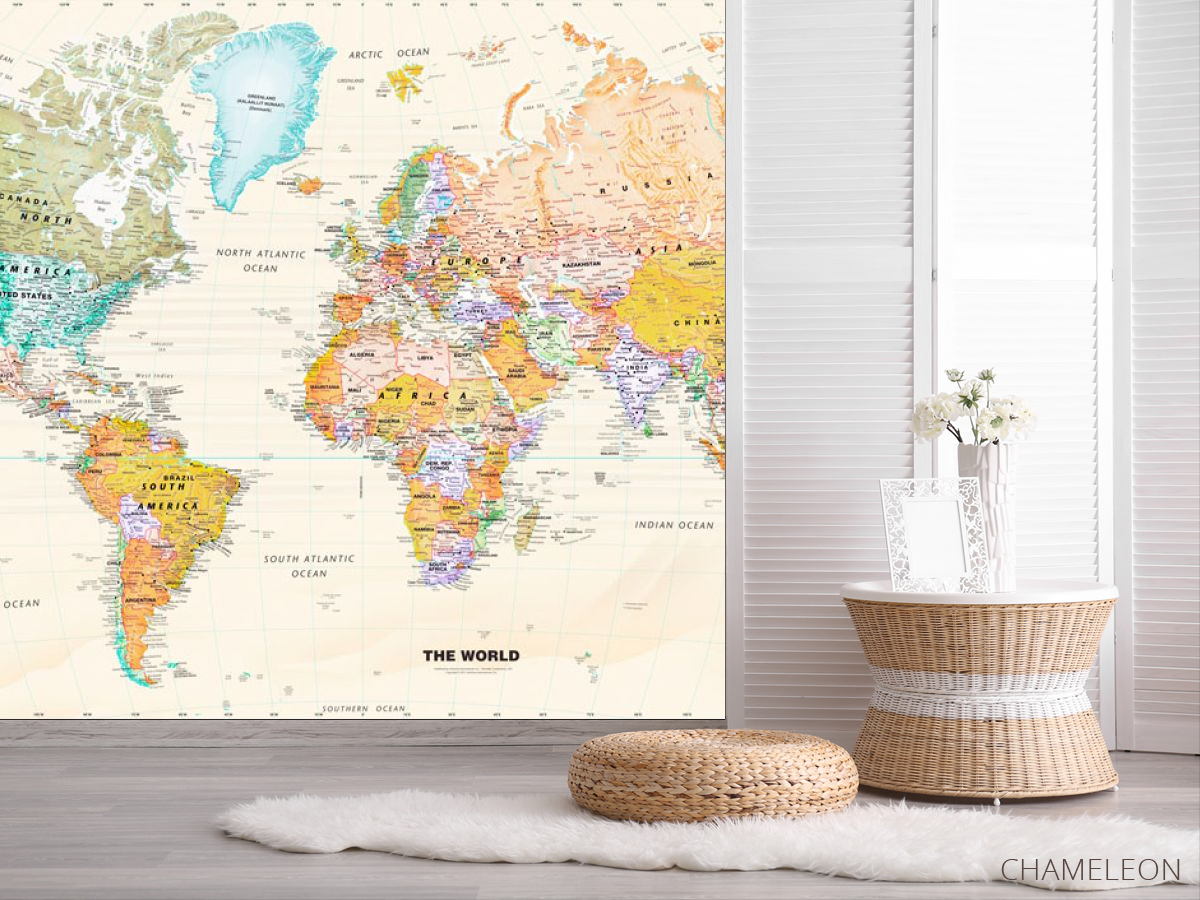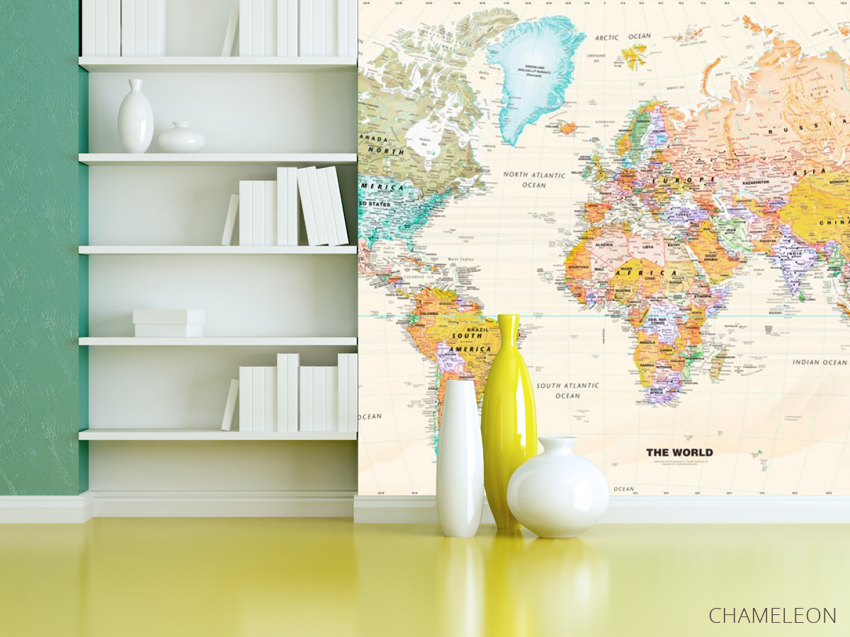 Фотошпалери карта світу є дуже хорошим вибором як для будинку (в вітальню, робочий кабінет або кухню), так і для інших будівель (в школу, ресторан або салон краси). Вони виглядають розкішно, мають стильний дизайн і відмінно підходять під будь-яке оформлення кімнати. Сучасні фотошпалери на стіну виробляються з надійного матеріалу, який не псується і не дряпається. Зображення - це повністю безпечна фарба, яка не викликає алергії, а також залишається красивим протягом багатьох років. Ви можете впевнено використовувати шпалери, які прикрасять будь-яке приміщення. Купити стильні і оригінальні фотошпалери з картою світу можна в інтернет-магазині Chameleons.
