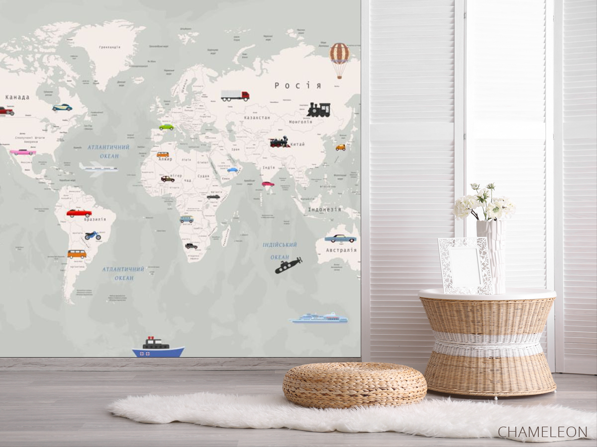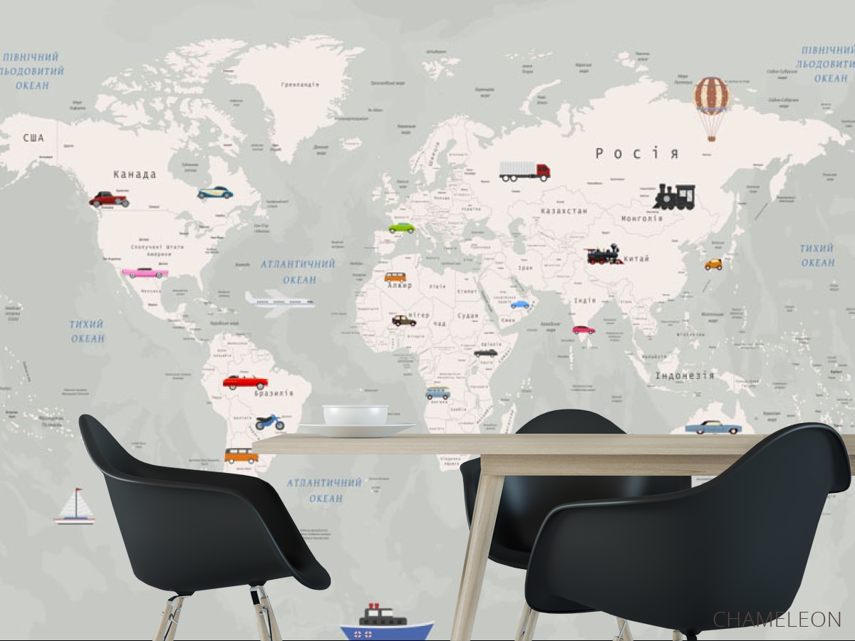 Фотообои Карта мира и машинки 20052