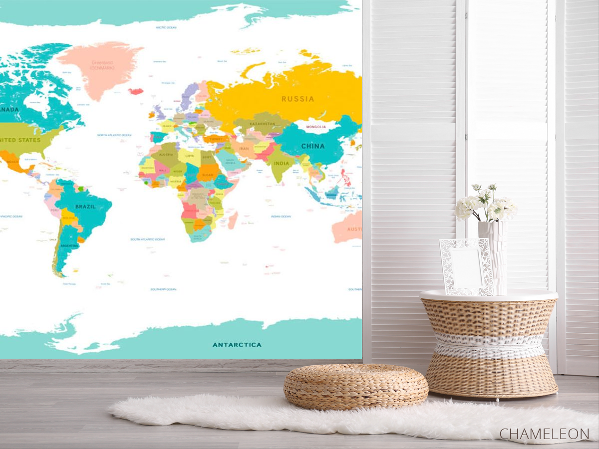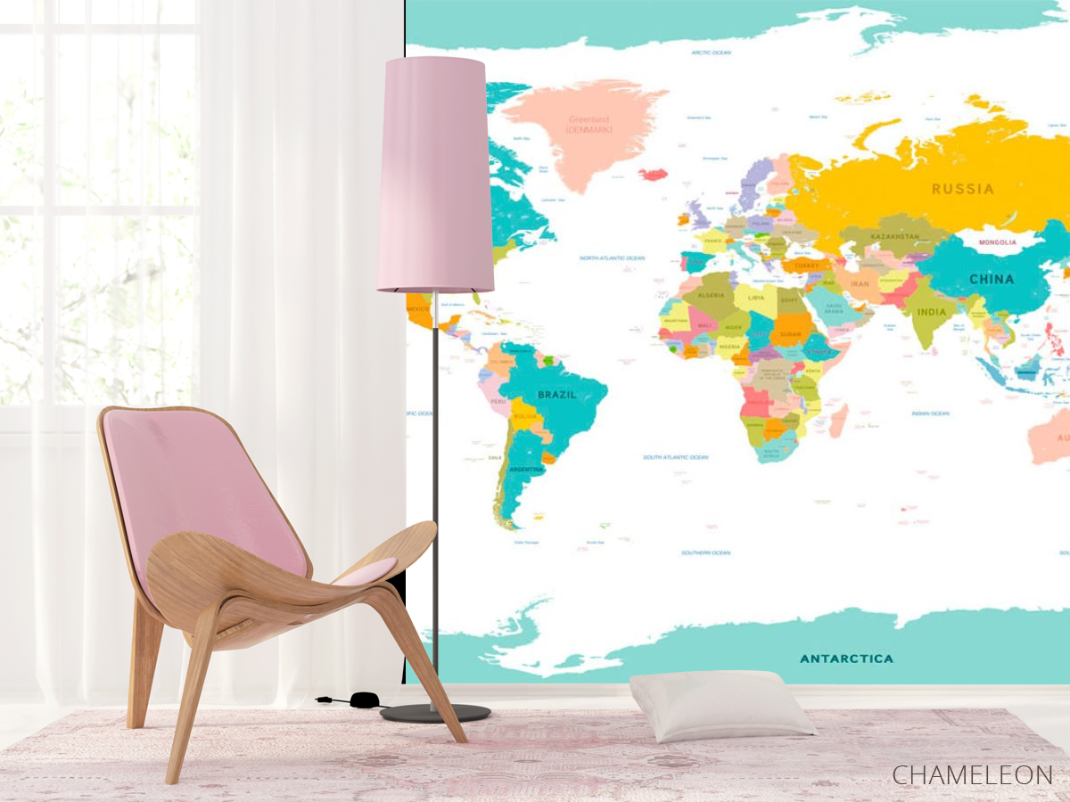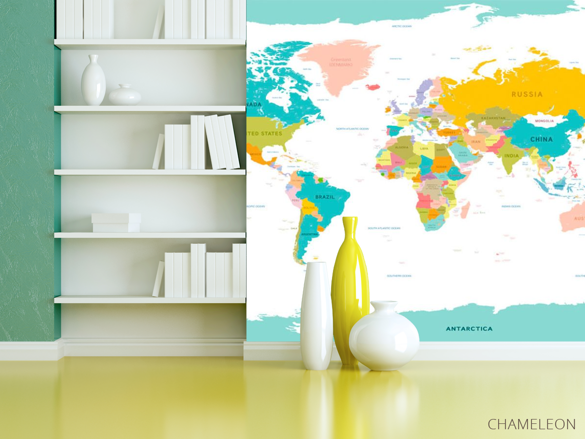 Фотошпалери карта світу є дуже хорошим вибором як для будинку (в вітальню, робочий кабінет або кухню), так і для інших будівель (в школу, ресторан або салон краси). Вони виглядають розкішно, мають стильний дизайн і відмінно підходять під будь-яке оформлення кімнати. Сучасні фотошпалери на стіну виробляються з надійного матеріалу, який не псується і не дряпається. Зображення - це повністю безпечна фарба, яка не викликає алергії, а також залишається красивим протягом багатьох років. Ви можете впевнено використовувати шпалери, які прикрасять будь-яке приміщення. Купити стильні і оригінальні фотошпалери з картою світу можна в інтернет-магазині Chameleons.