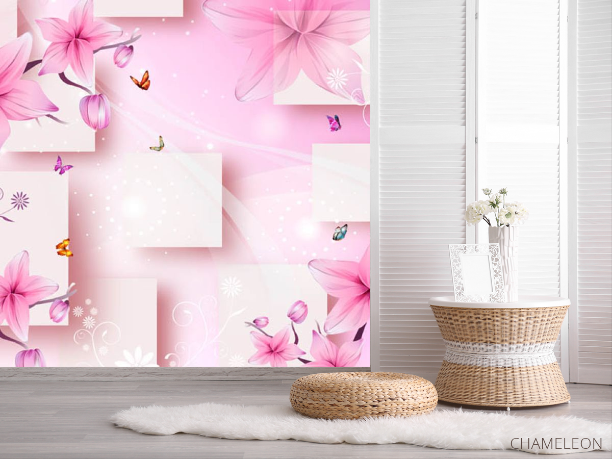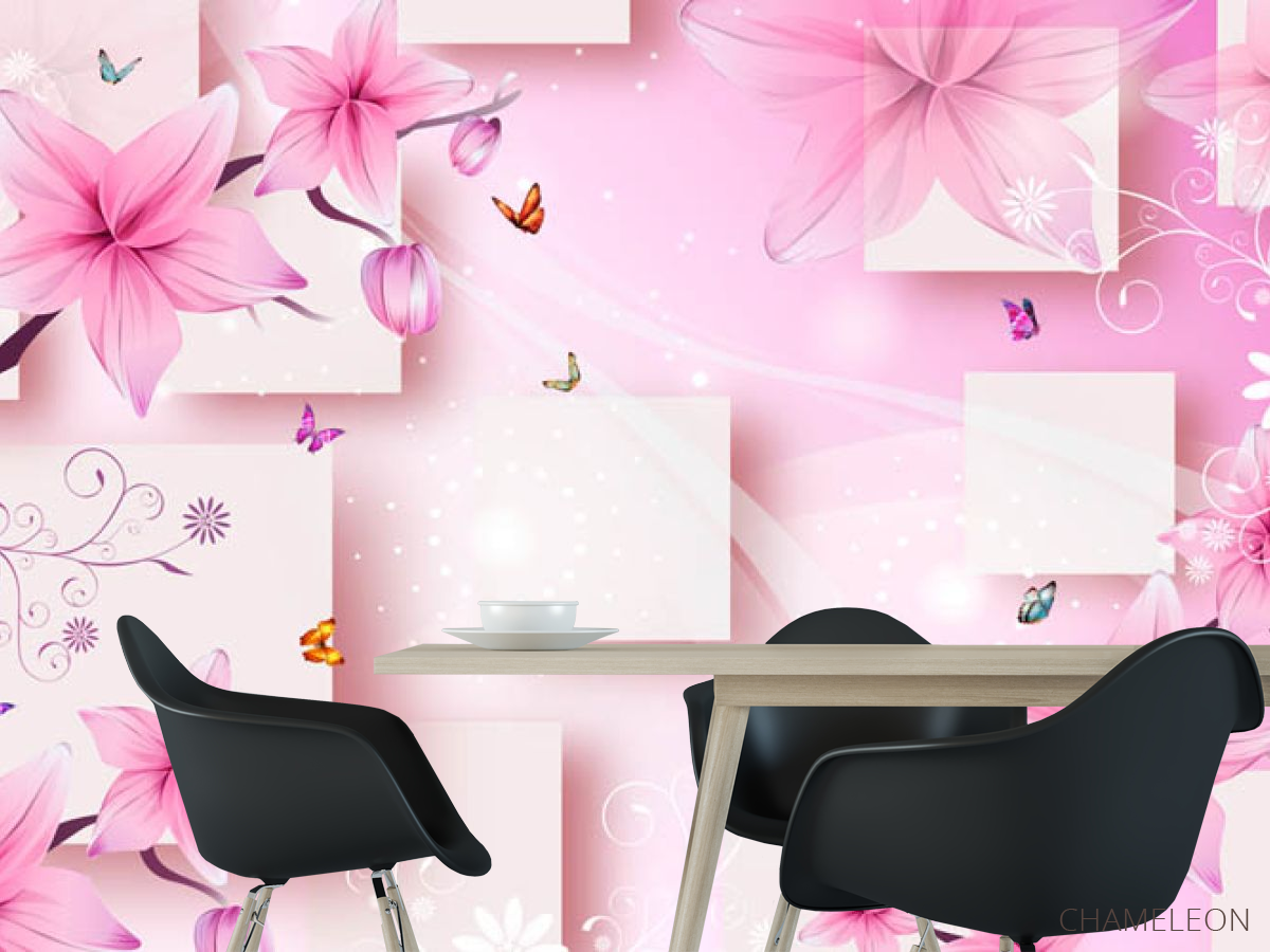 Фотошпалери 3д квадрати з квітами, (арт. 20176) - купити в інтернет-магазині Chameleon
