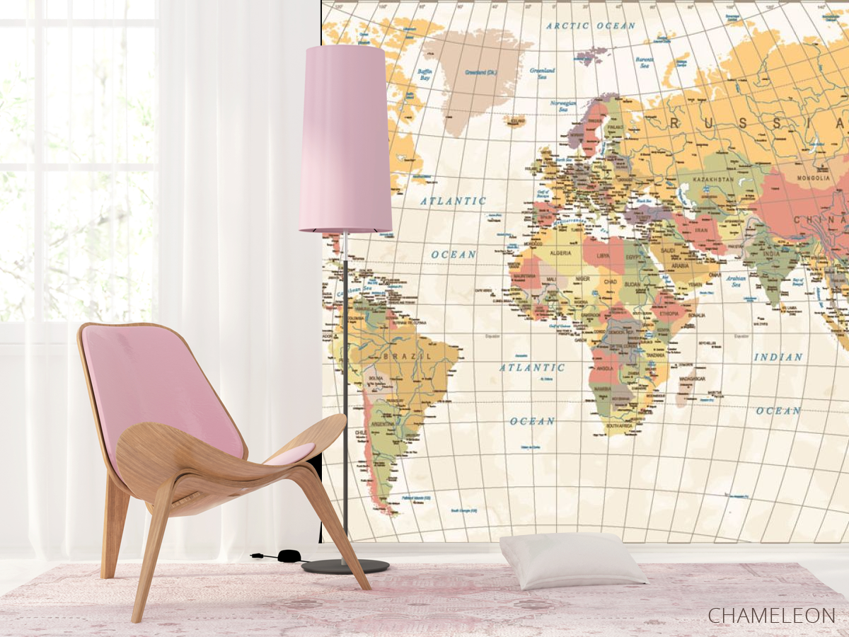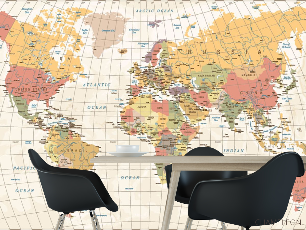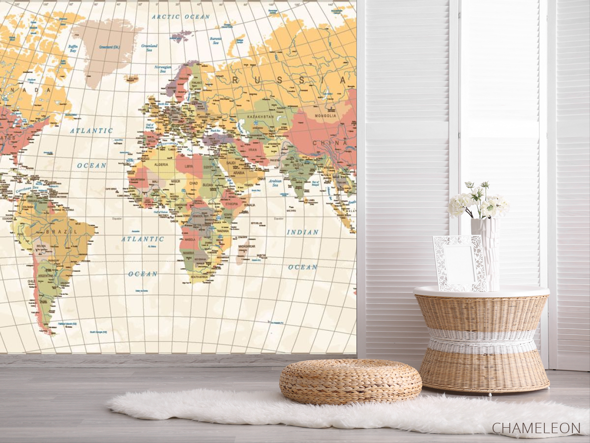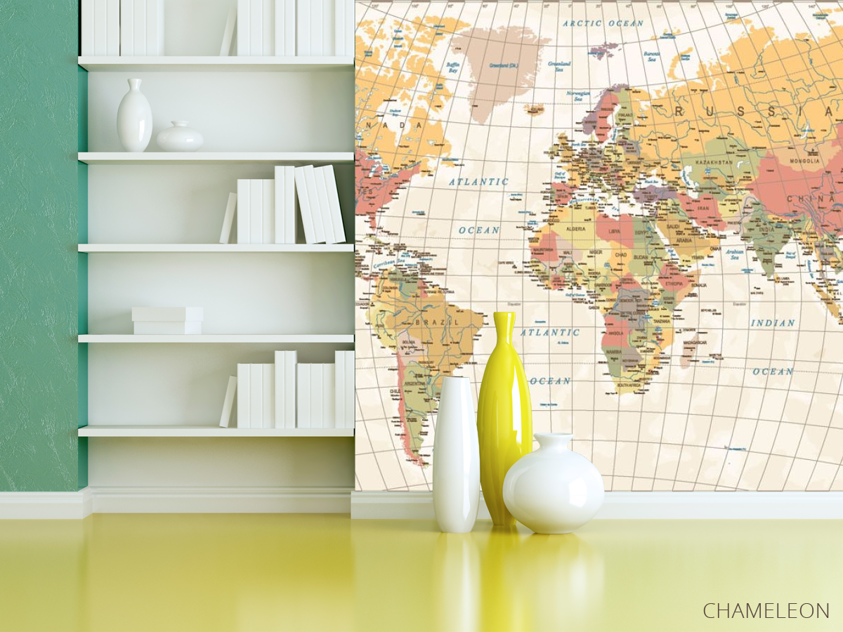 Фотошпалери карта світу є дуже хорошим вибором як для будинку (в вітальню, робочий кабінет або кухню), так і для інших будівель (в школу, ресторан або салон краси). Вони виглядають розкішно, мають стильний дизайн і відмінно підходять під будь-яке оформлення кімнати. Сучасні фотошпалери на стіну виробляються з надійного матеріалу, який не псується і не дряпається. Зображення - це повністю безпечна фарба, яка не викликає алергії, а також залишається красивим протягом багатьох років. Ви можете впевнено використовувати шпалери, які прикрасять будь-яке приміщення. Купити стильні і оригінальні фотошпалери з картою світу можна в інтернет-магазині Chameleons.