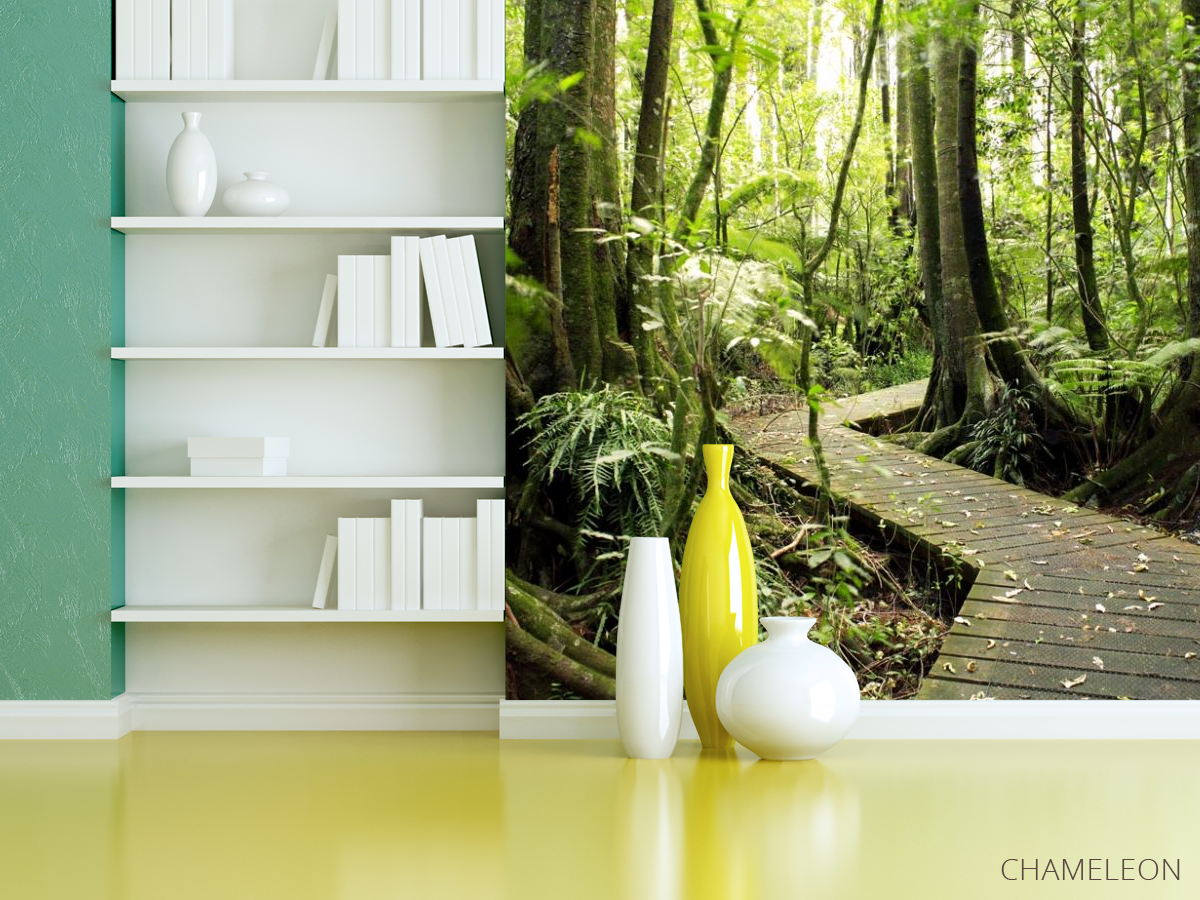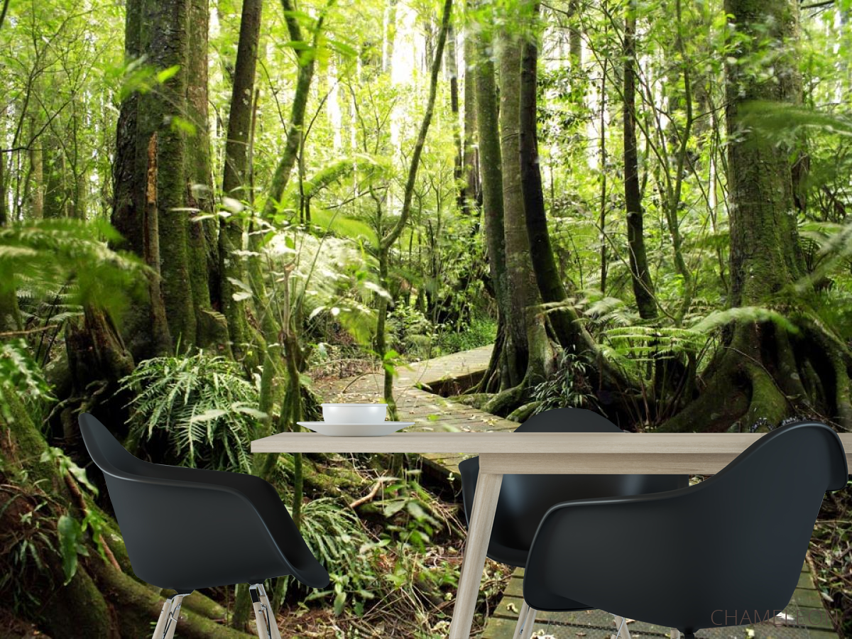 Фотошпалери дерев'яна доріжка в лісі