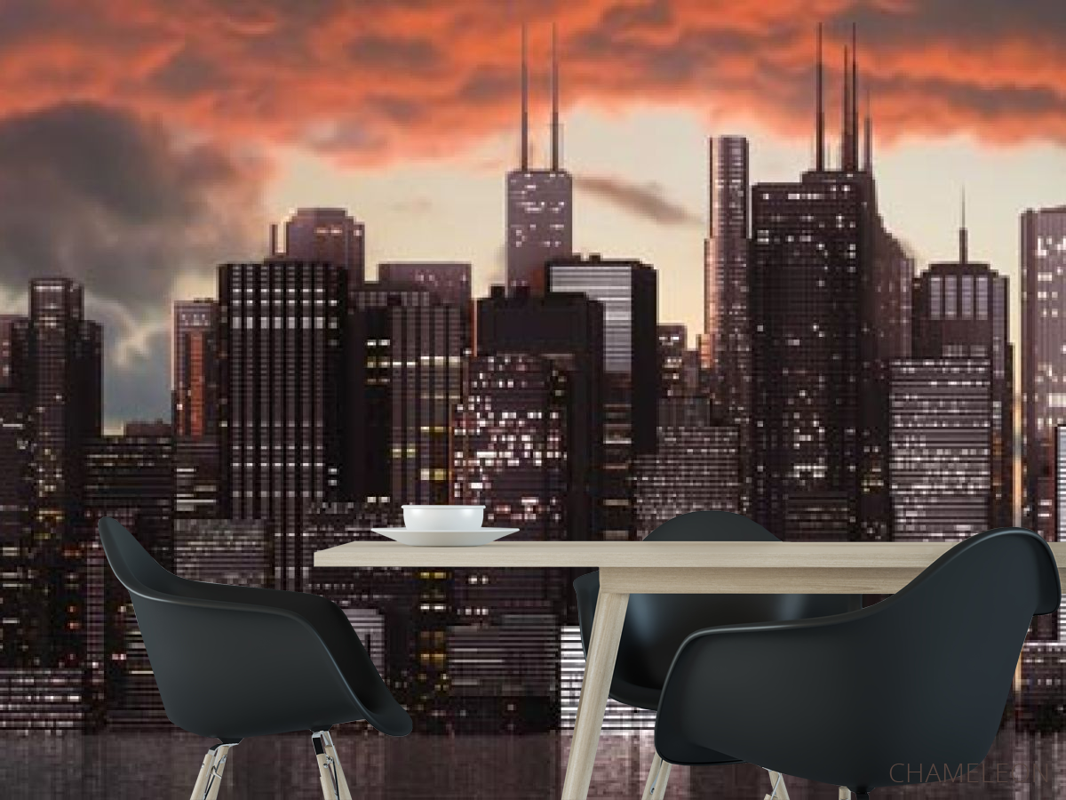 Фотошпалери захід сонця над мегаполісом