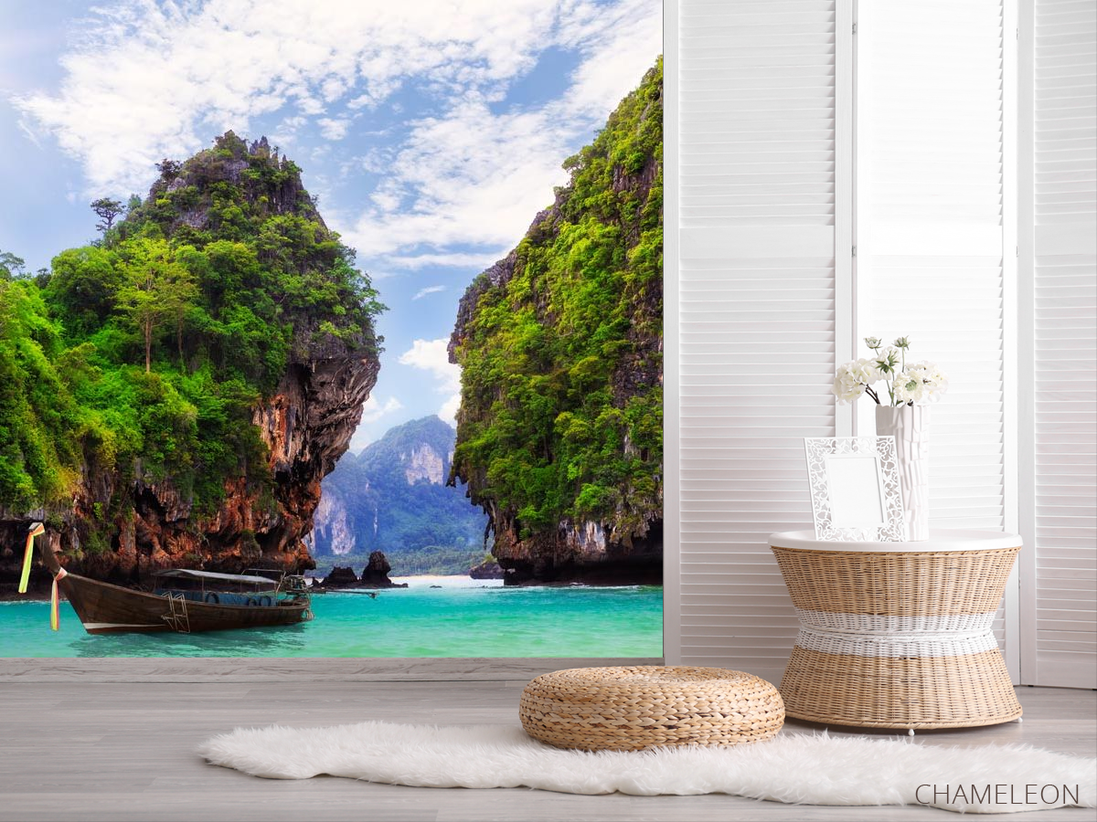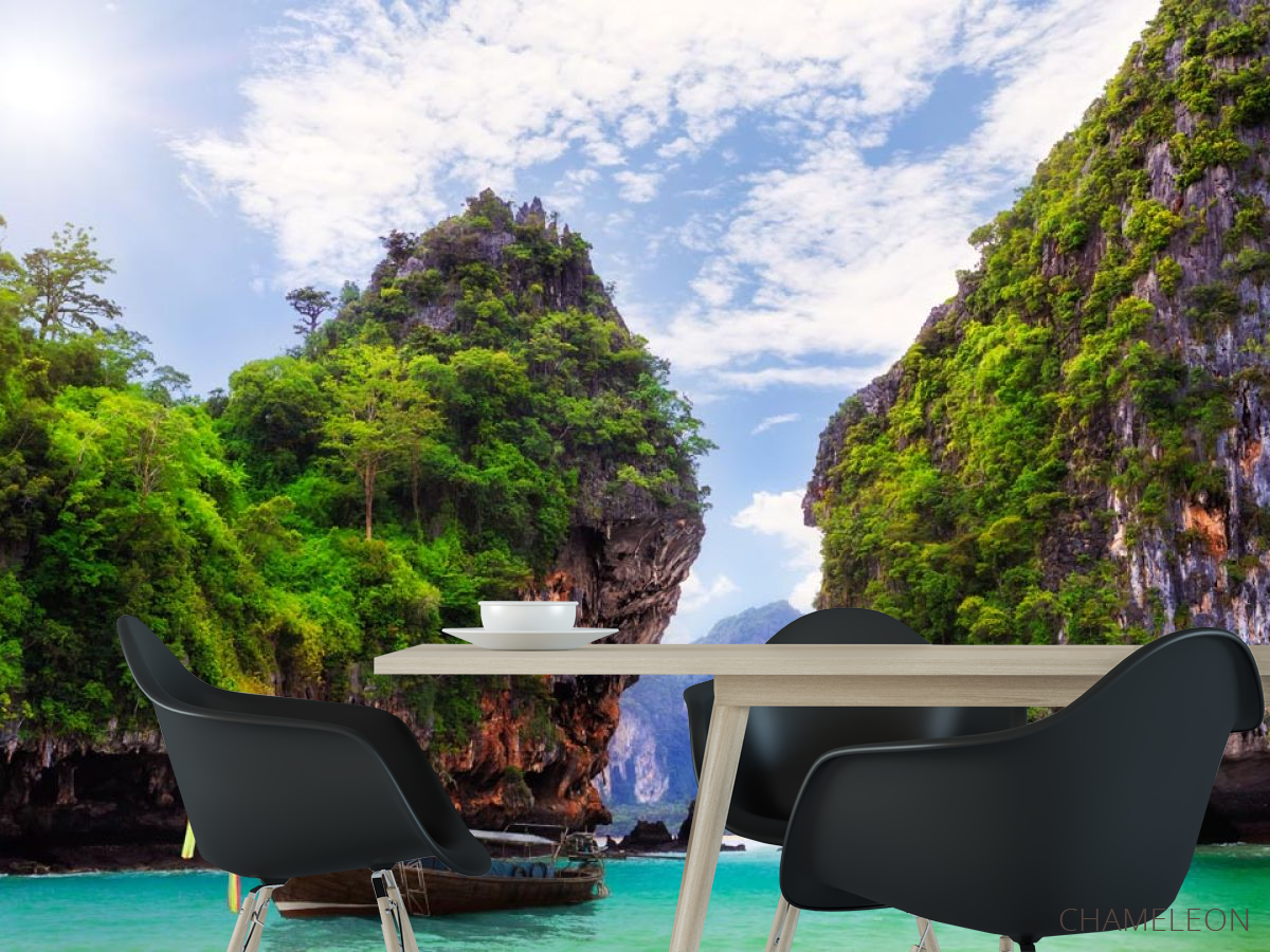 Фотошпалери човен біля скель, (арт. 20633) - купити в інтернет-магазині Chameleon