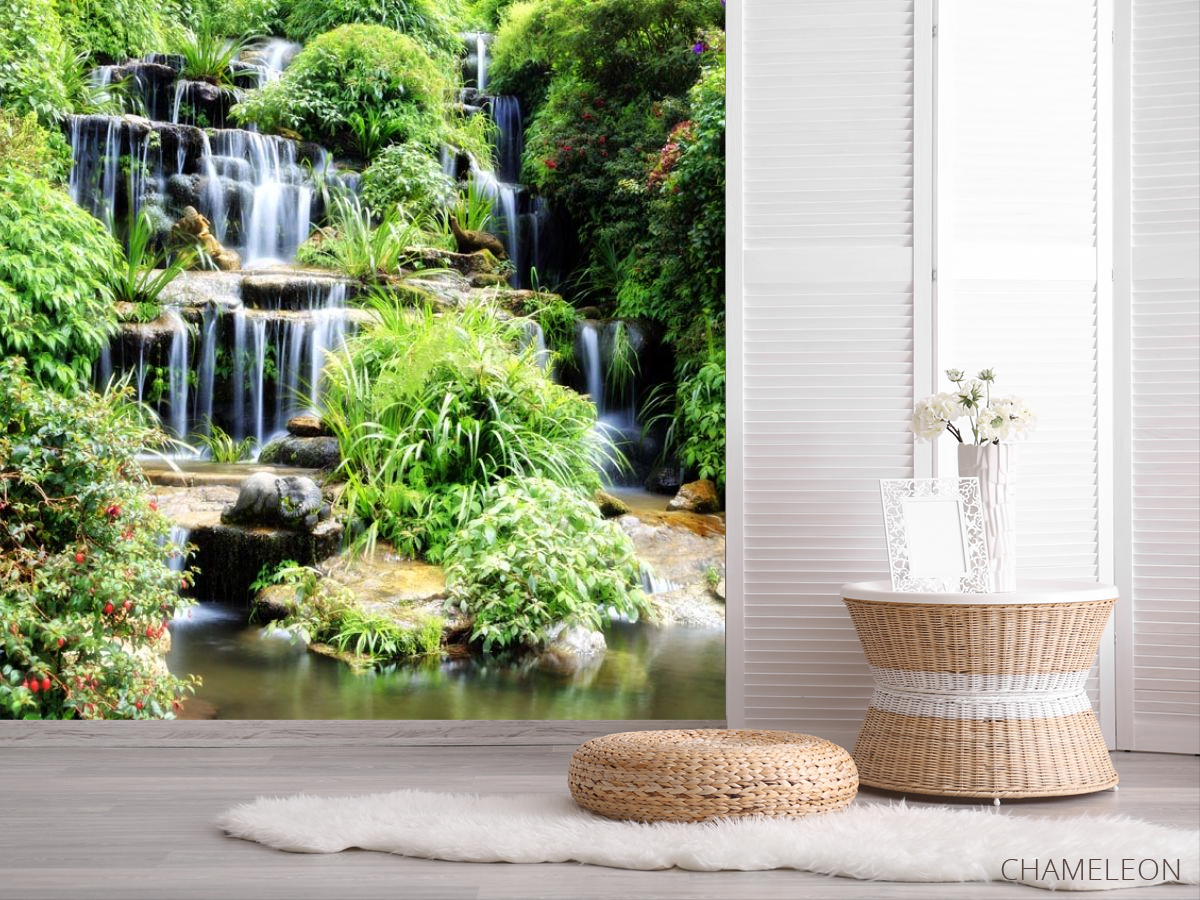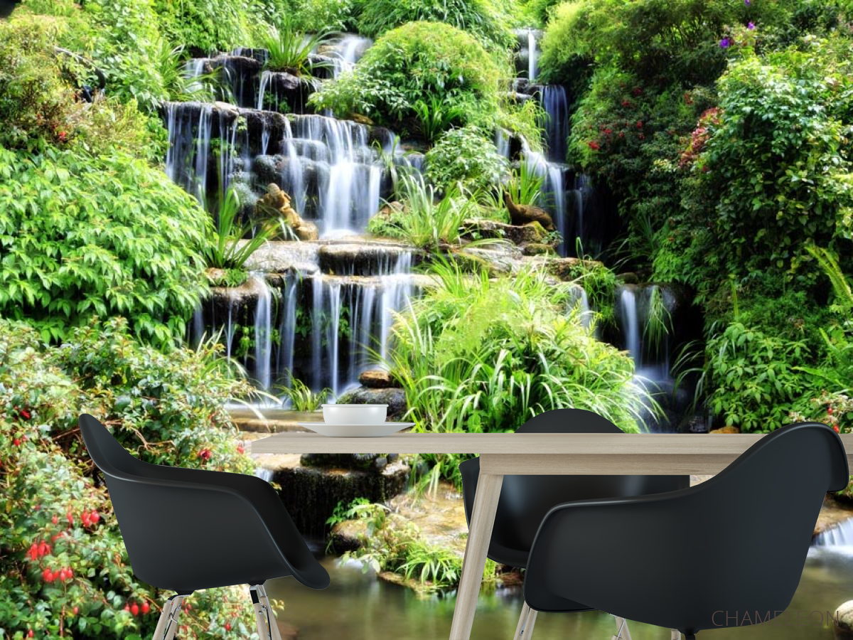 Фотошпалери водоспад серед зелені