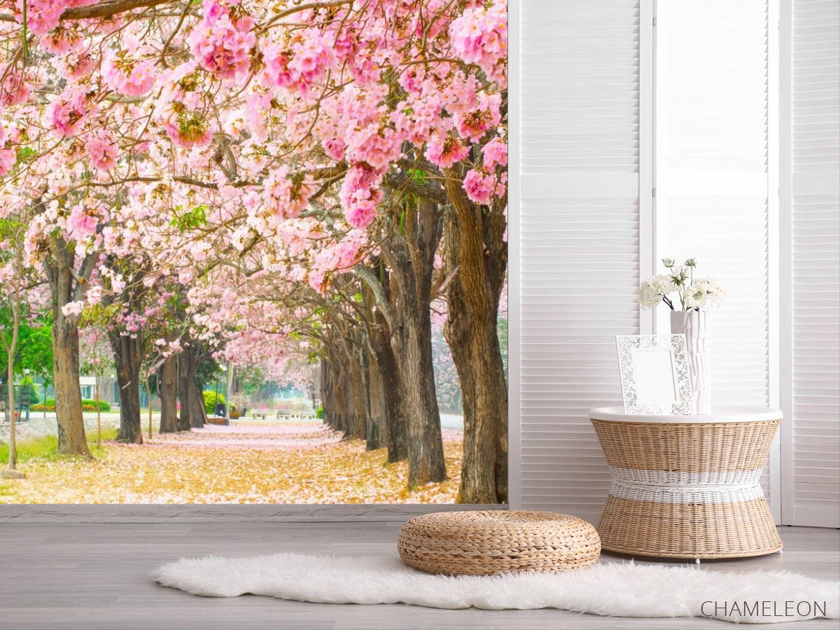 Фотошпалери алея з рожевих дерев