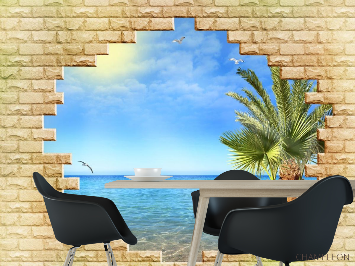 Фотошпалери Море за цегляною стіною