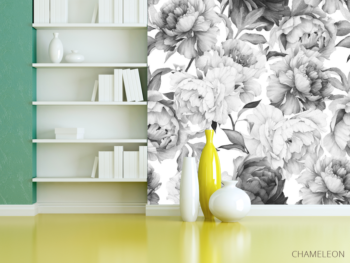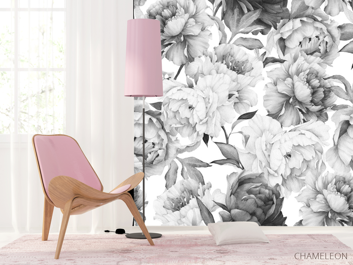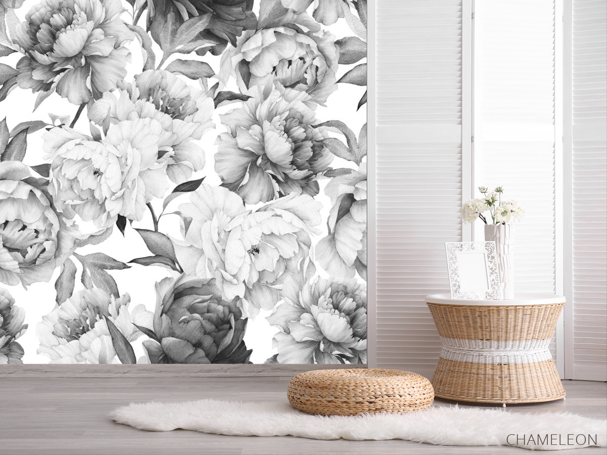 Фотошпалери чорно-білі півонії