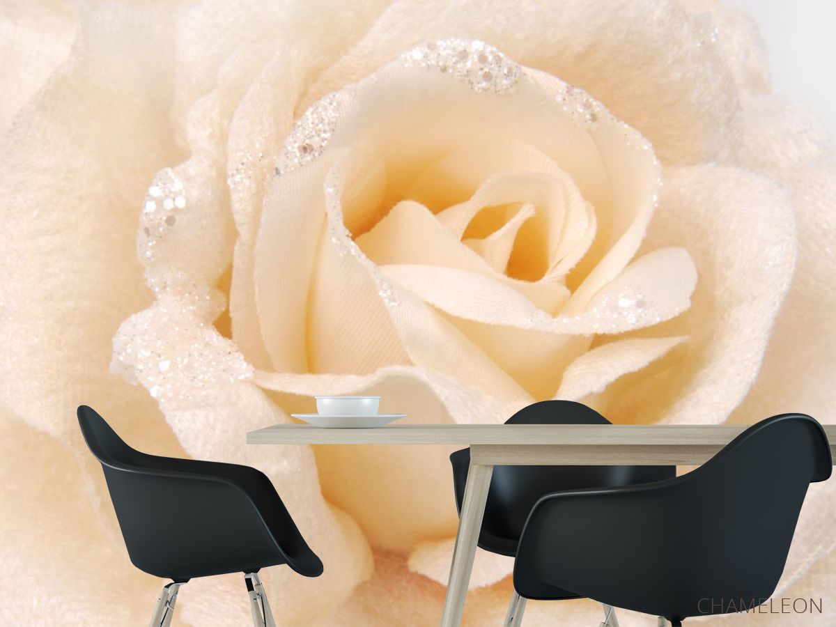 Фотошпалери бежева троянда з тканини з блискітками 21469