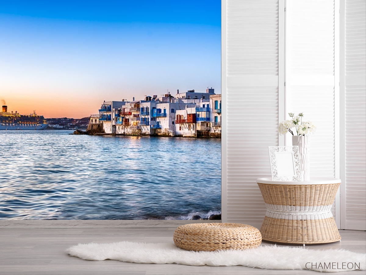 Фотошпалери пароплав на березі вечірнього моря