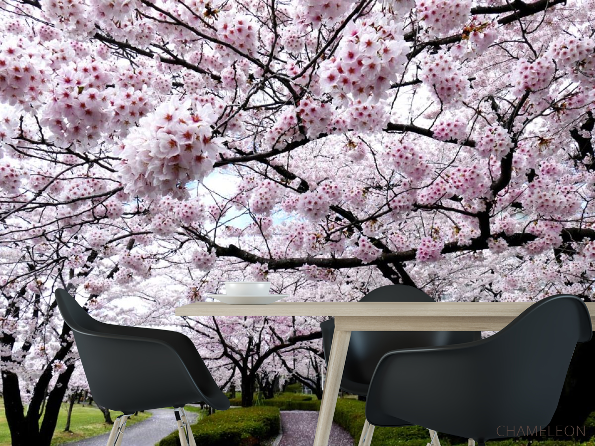 Фотошпалери дерева з білими квіточками 21536