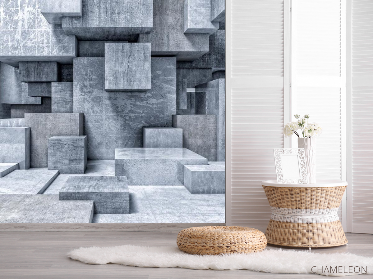 Фотошпалери сірі гранітні куби 3Д