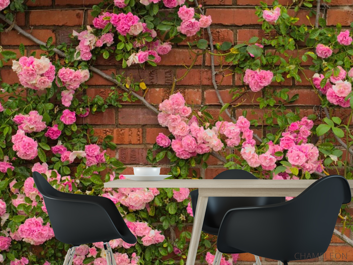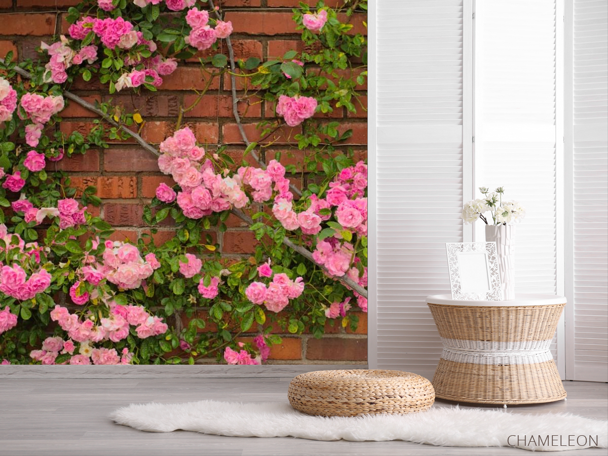 Фотошпалери чайна троянда на цегляній стіні