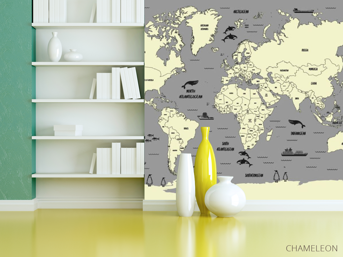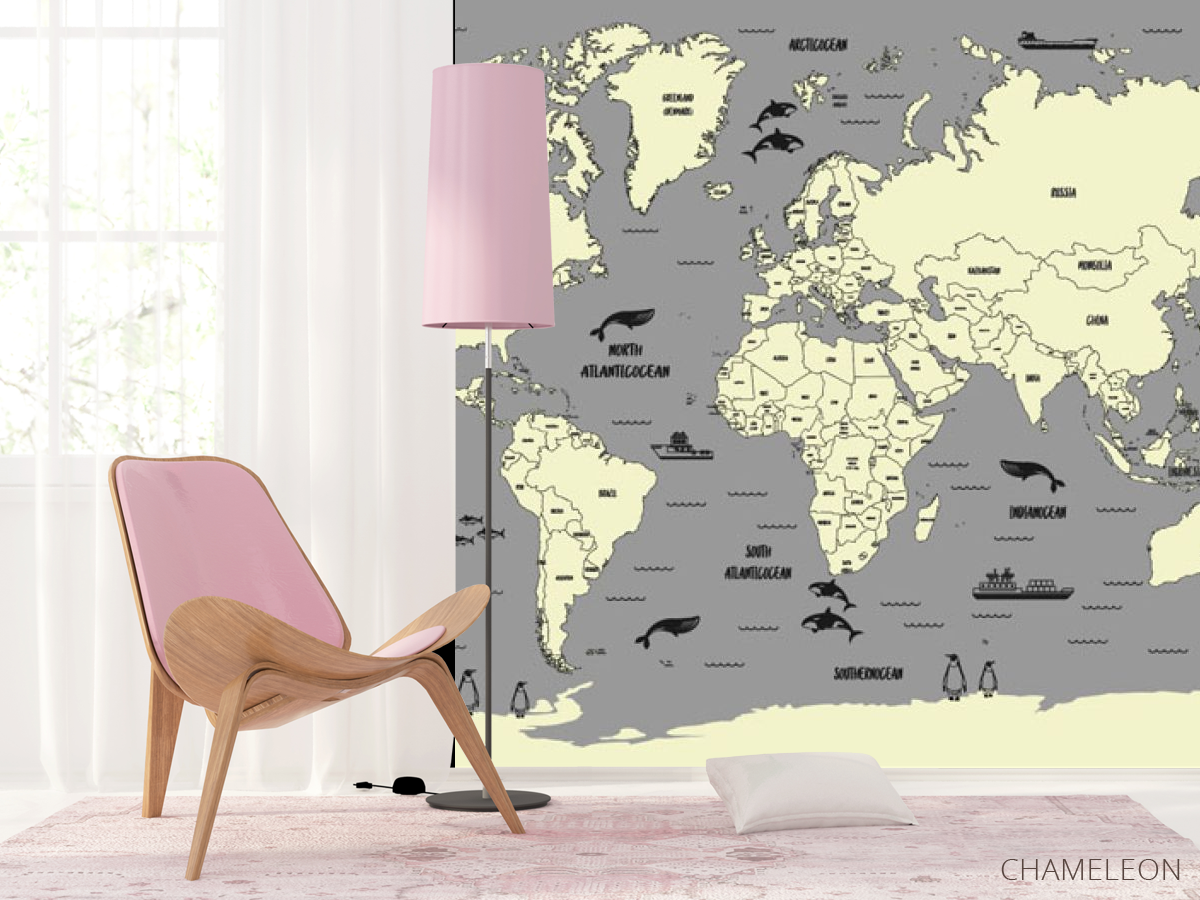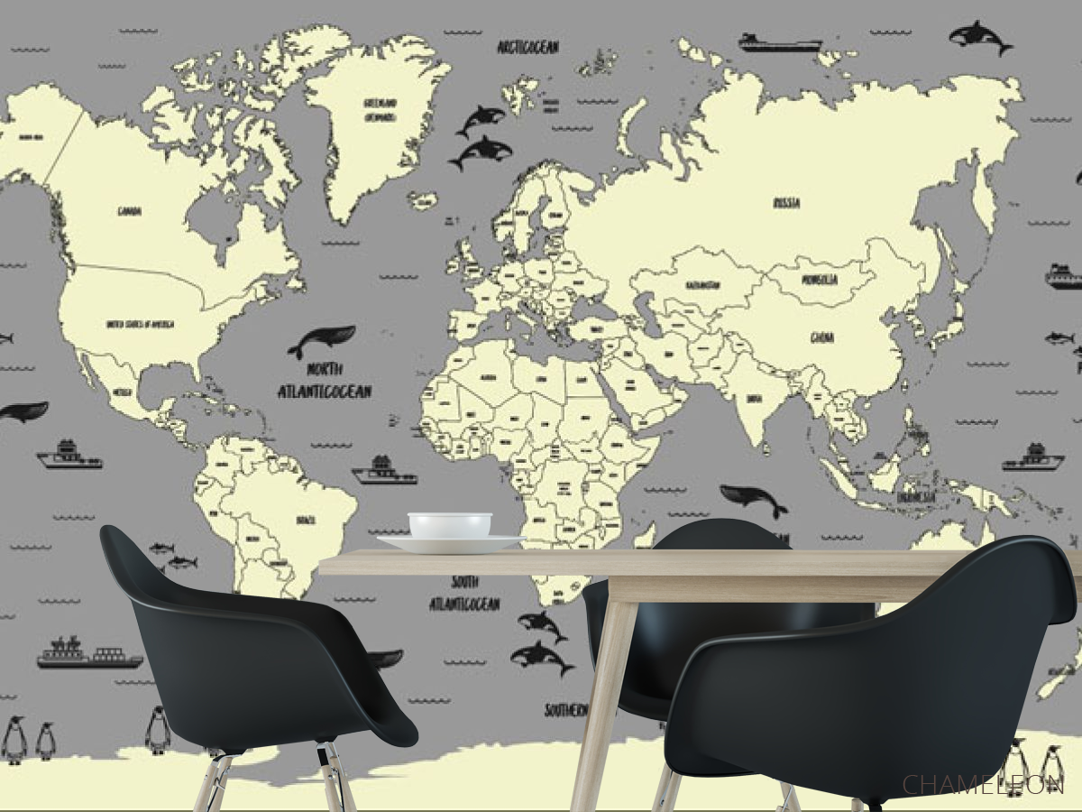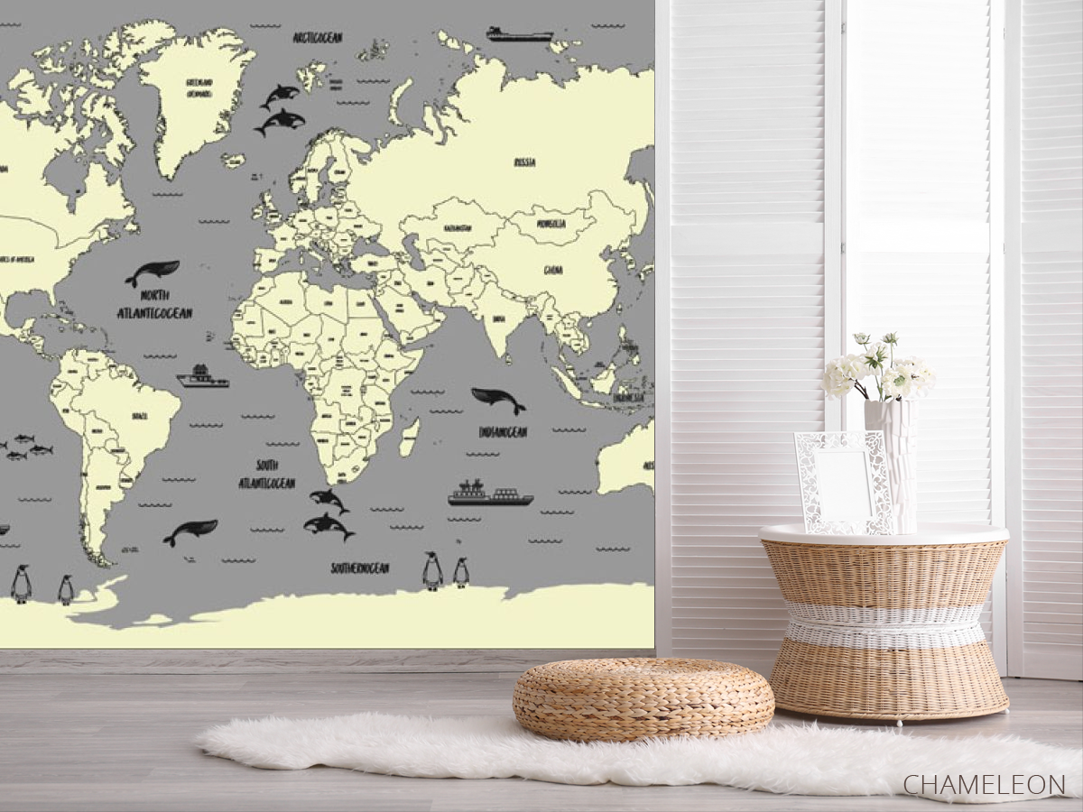 Фотошпалери Карта в сірому кольорі в дитячу 22044