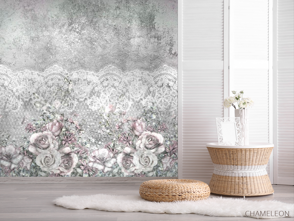 Фотошпалери Квіти на сірому бетоні