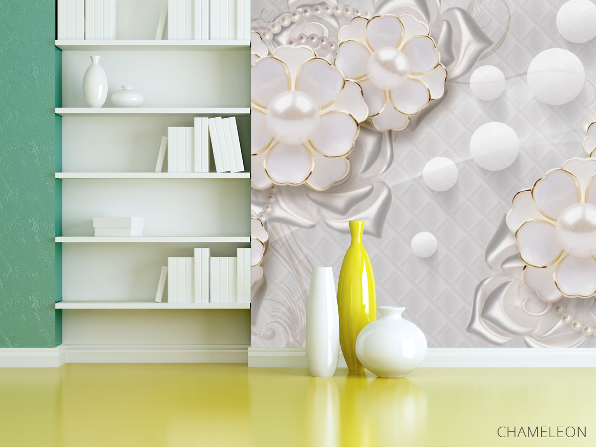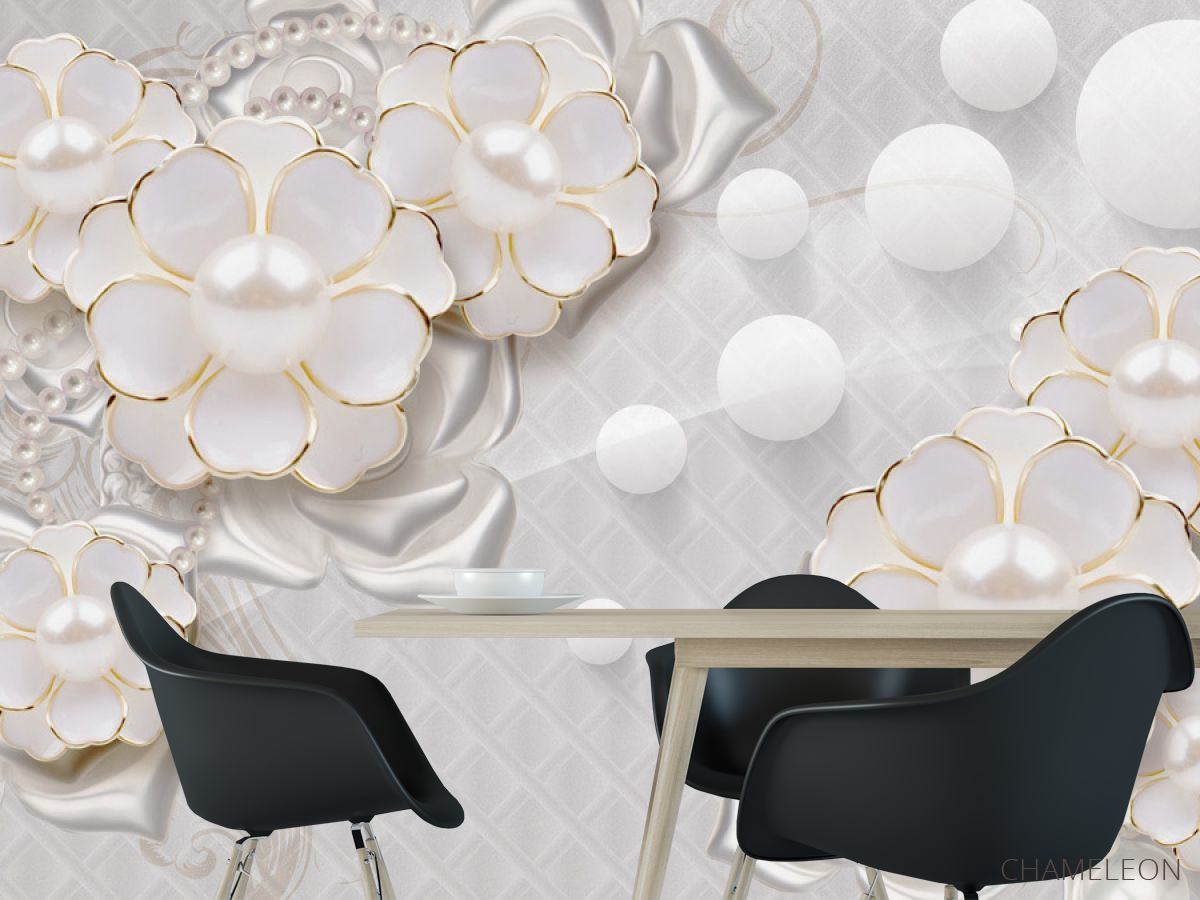 Фотошпалери Білі квіти з перлами 22181