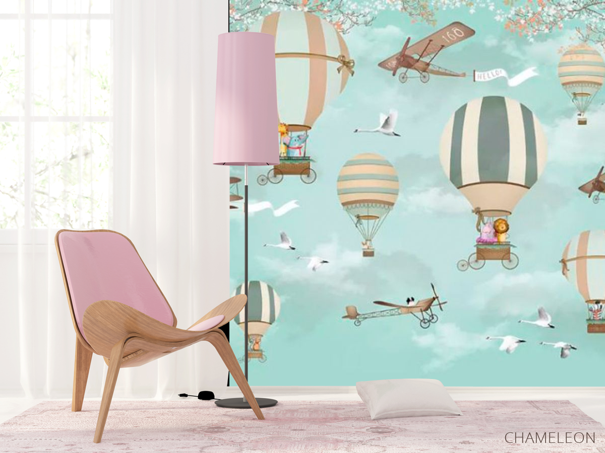 Фотошпалери повітряні кулі на бірюзовому тлі 22298