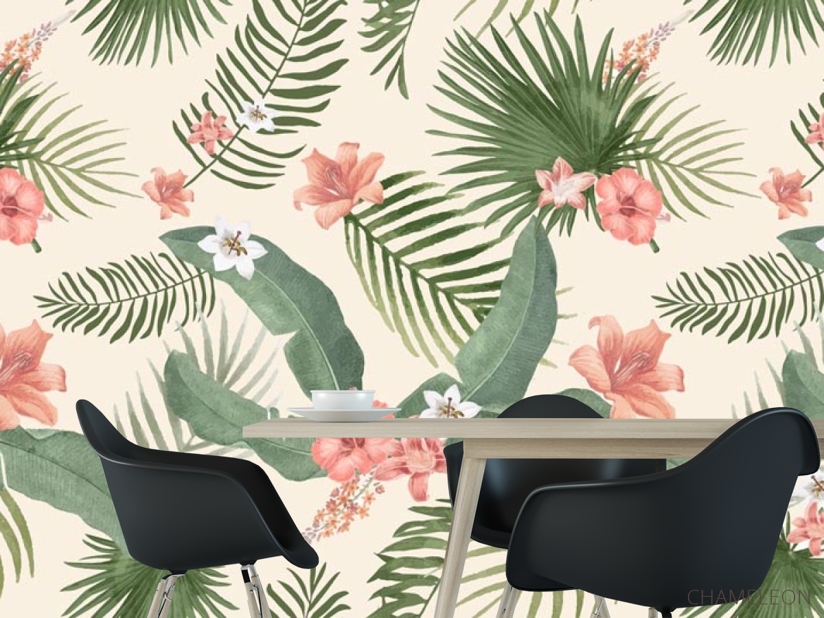 Сучасний інтер'єр в більшості випадків виконаний з пастельних відтінків і часом хочеться внести в них трохи яскравості. Фотошпалери тропічні листя стануть відмінним рішенням для тих, хто бажає розбавити стиль кімнати і надати йому природної бадьорості, барвистості і створити атмосферу жарких країн. Такі шпалери чудово впишуться в обстановку спальні, кухні або вітальні. Фотошпалери Тропічні листя додадуть в будинок комфорту і затишку, а також будуть радувати око протягом багатьох років. Шпалери виготовлені з матеріалів високої якості, не викликають алергію і не вигоряють на сонці. Ви можете вибрати паперову або флізелінову основу, але незалежно від цього, клеїти їх абсолютно легко: достатньо лише нанести клей на стіну і прикріпити полотно.
