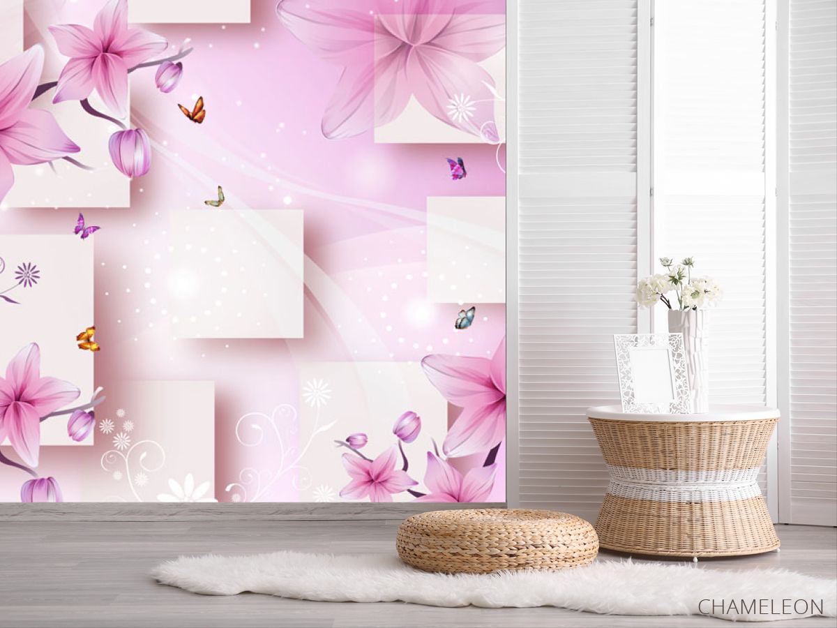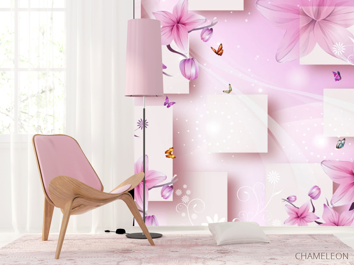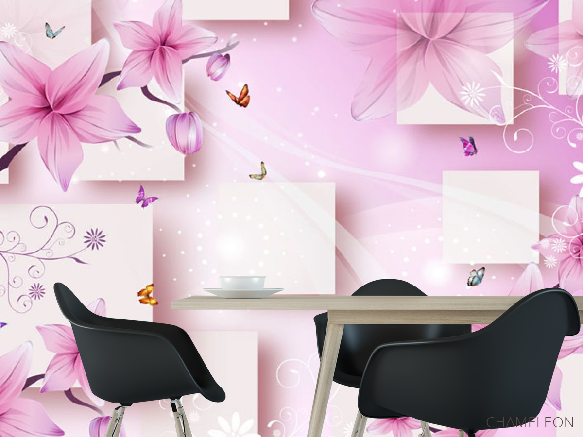 Фотошпалери 3д рожеві квіти, (арт. 22573) - купити в інтернет-магазині Chameleon