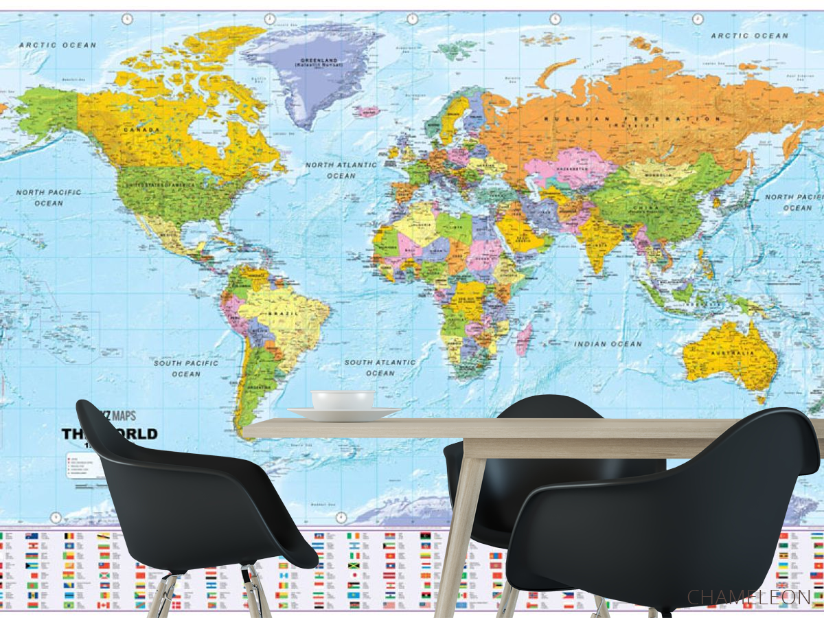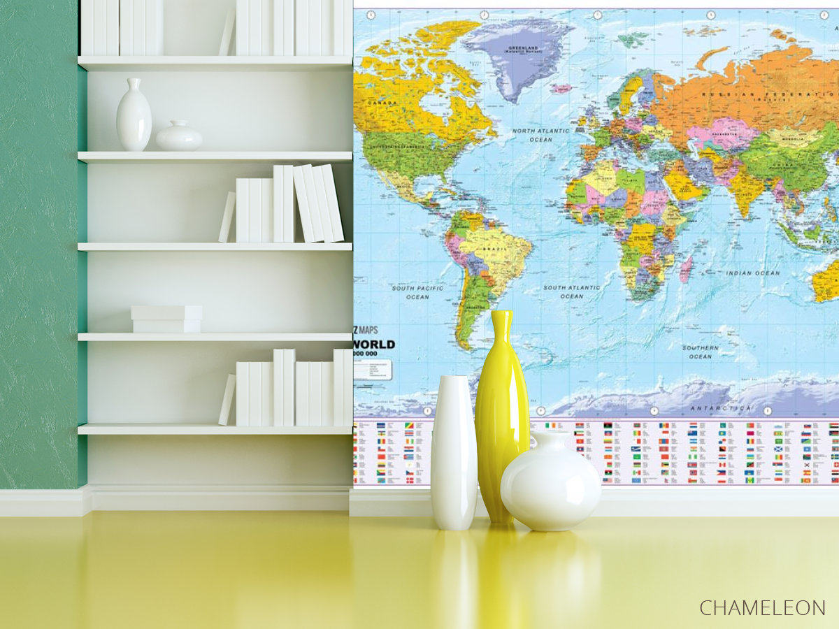 Фотошпалери карта світу є дуже хорошим вибором як для будинку (в вітальню, робочий кабінет або кухню), так і для інших будівель (в школу, ресторан або салон краси). Вони виглядають розкішно, мають стильний дизайн і відмінно підходять під будь-яке оформлення кімнати. Сучасні фотошпалери на стіну виробляються з надійного матеріалу, який не псується і не дряпається. Зображення - це повністю безпечна фарба, яка не викликає алергії, а також залишається красивим протягом багатьох років. Ви можете впевнено використовувати шпалери, які прикрасять будь-яке приміщення. Купити стильні і оригінальні фотошпалери з картою світу можна в інтернет-магазині Chameleons.