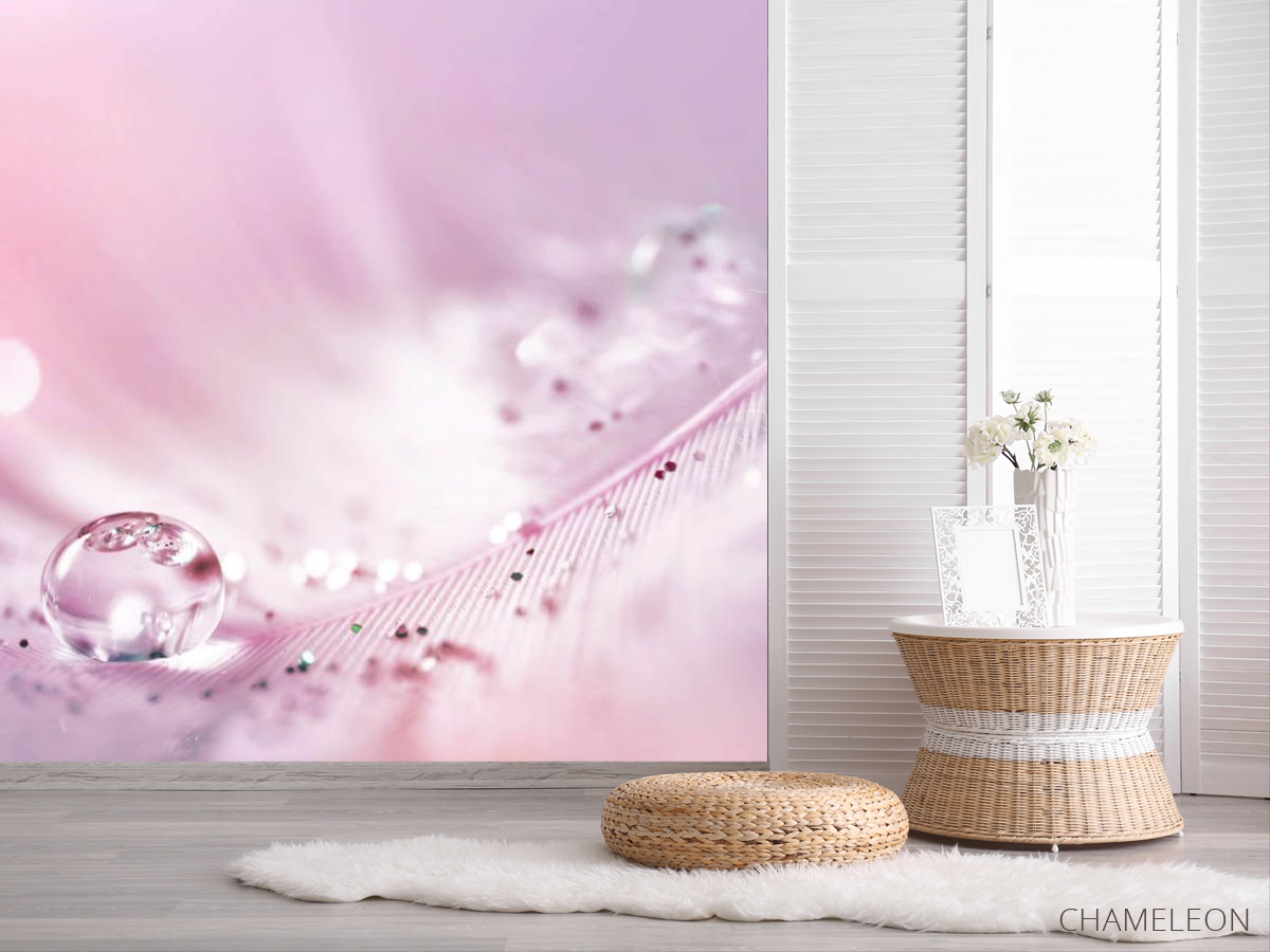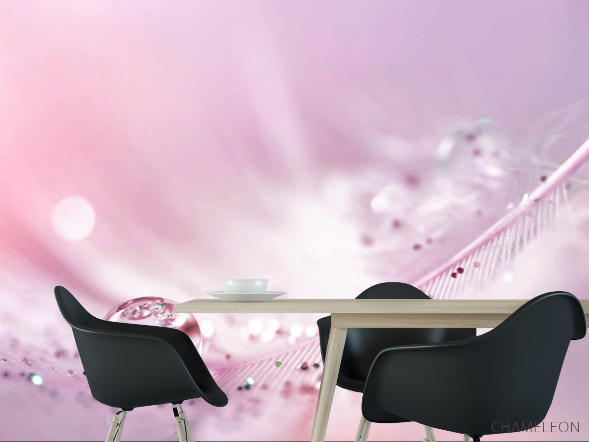 Фотошпалери Перо з росою на рожевому тлі