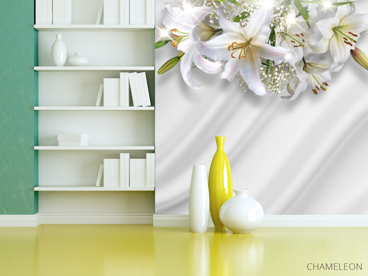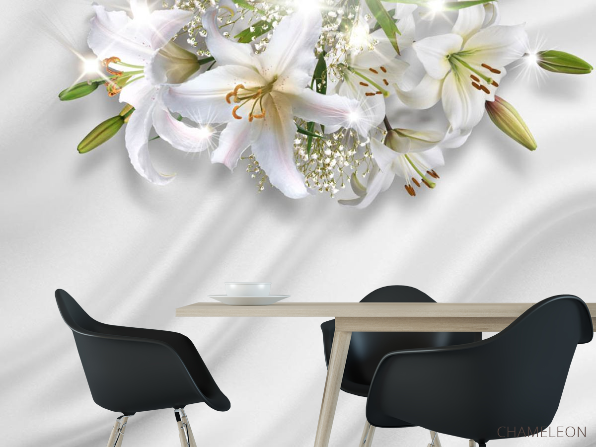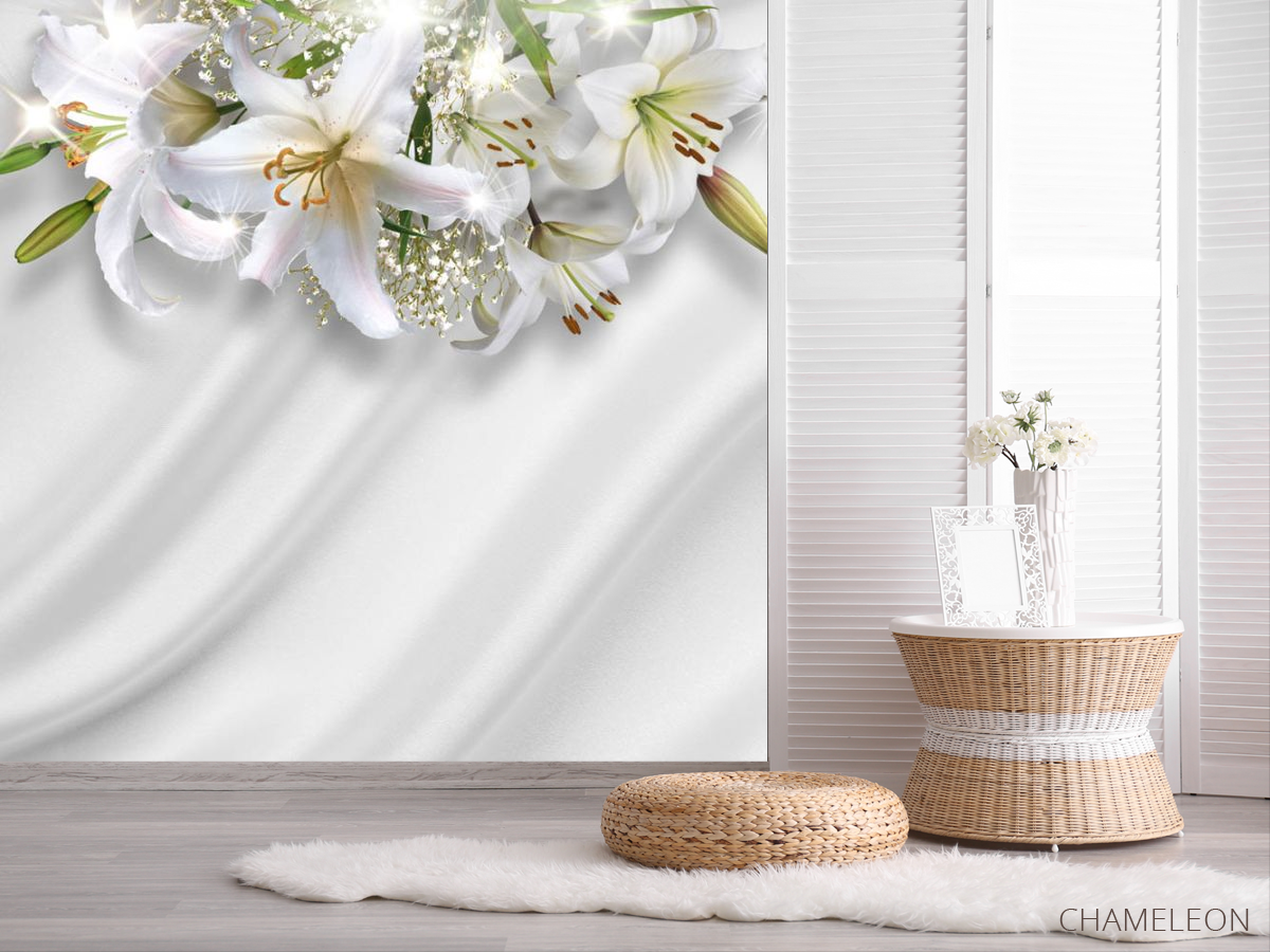 Фотошпалери Лілії на тлі атласу