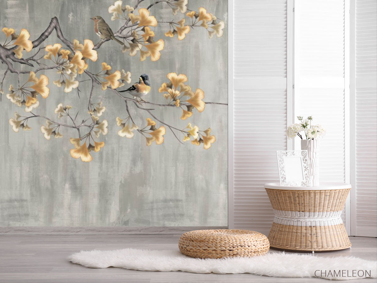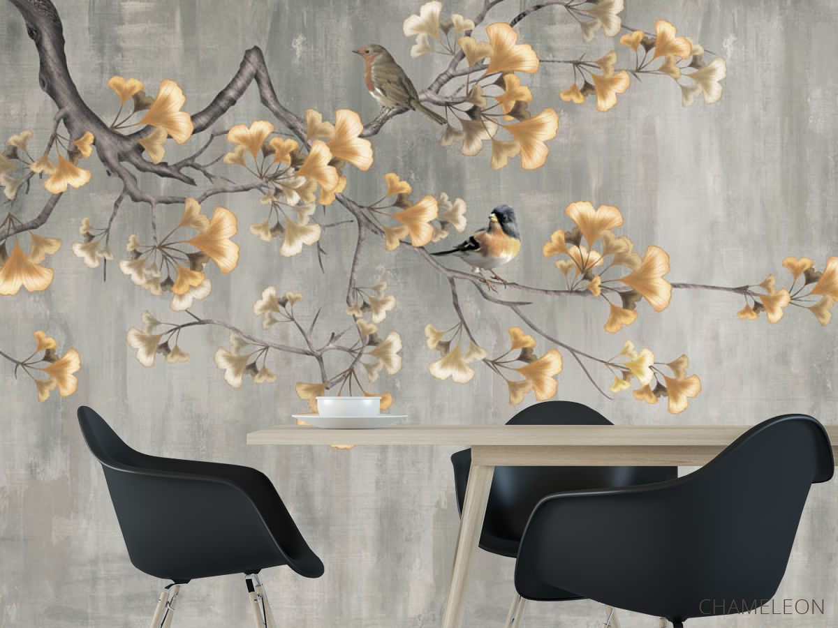 Фотошпалери Гінкго та птиці
