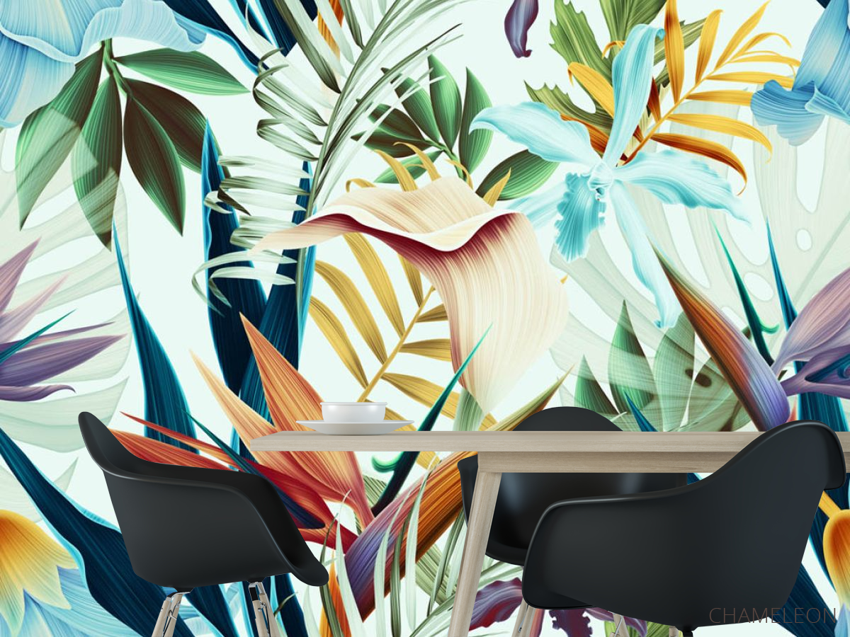 Сучасний інтер'єр в більшості випадків виконаний з пастельних відтінків і часом хочеться внести в них трохи яскравості. Фотошпалери тропічні листя стануть відмінним рішенням для тих, хто бажає розбавити стиль кімнати і надати йому природної бадьорості, барвистості і створити атмосферу жарких країн. Такі шпалери чудово впишуться в обстановку спальні, кухні або вітальні. Фотошпалери Тропічні листя додадуть в будинок комфорту і затишку, а також будуть радувати око протягом багатьох років. Шпалери виготовлені з матеріалів високої якості, не викликають алергію і не вигоряють на сонці. Ви можете вибрати паперову або флізелінову основу, але незалежно від цього, клеїти їх абсолютно легко: достатньо лише нанести клей на стіну і прикріпити полотно.