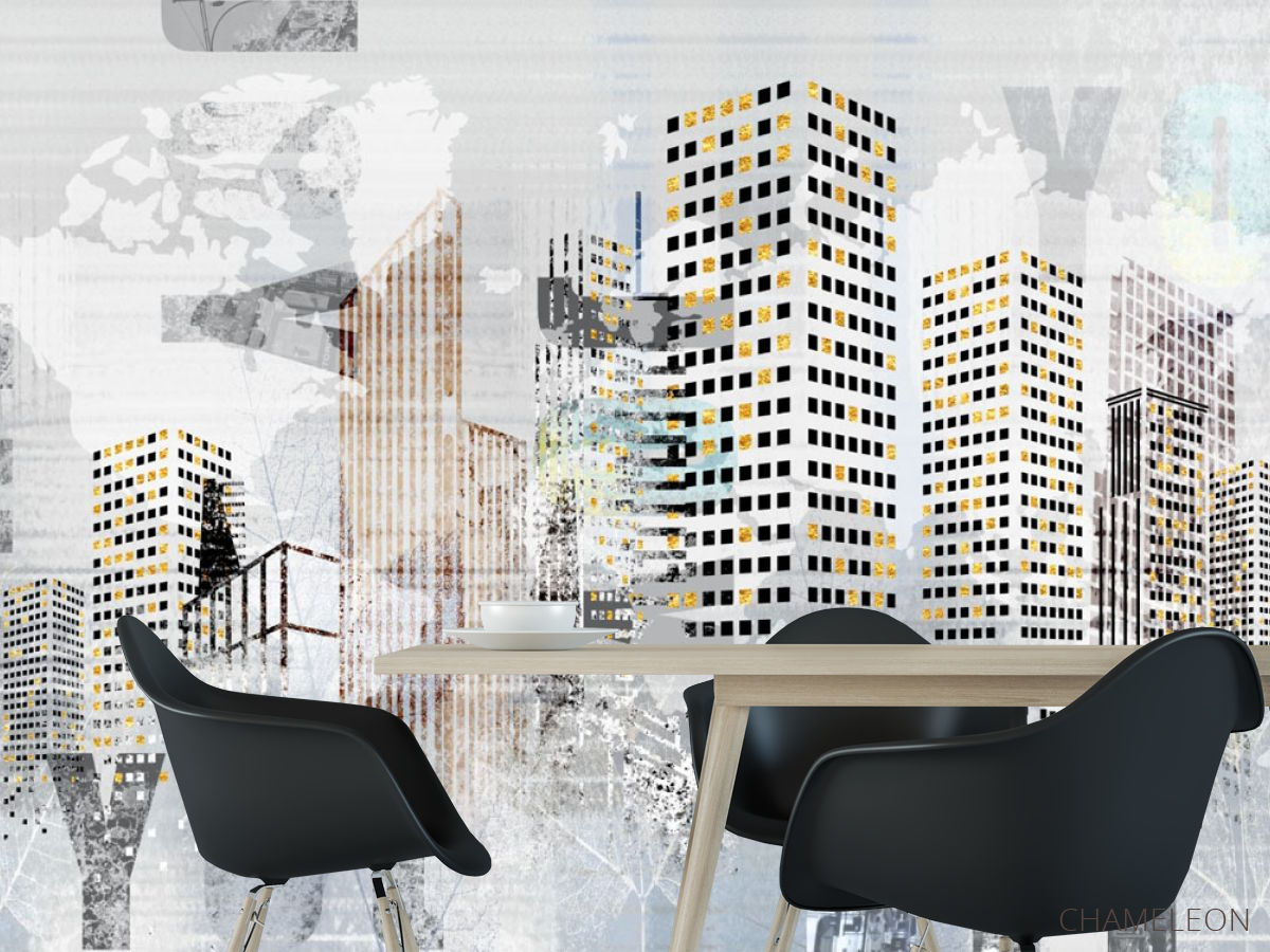 Фотошпалери сучасне місто з золоченням, (арт. 23782g) - купити в інтернет-магазині Chameleon