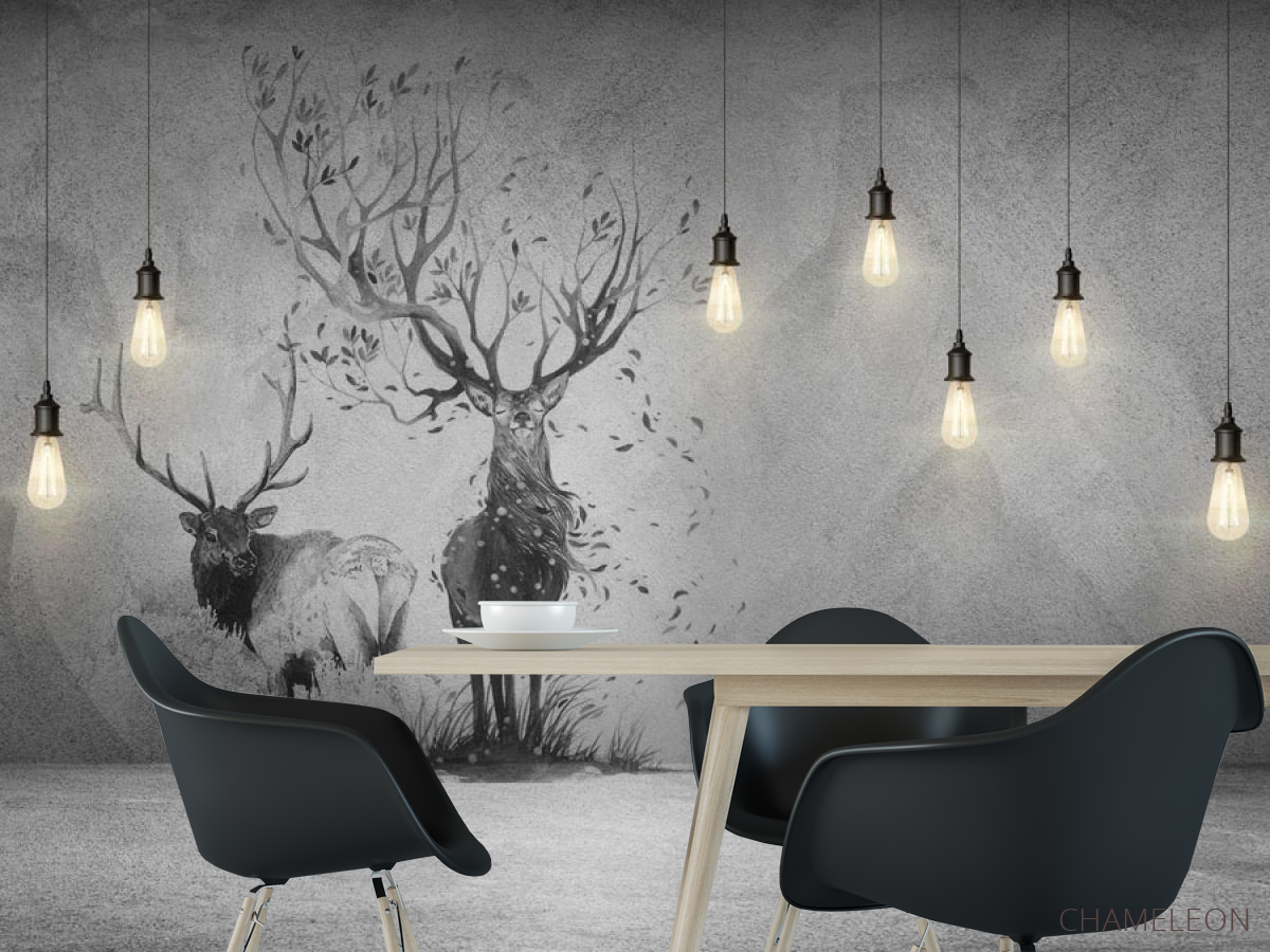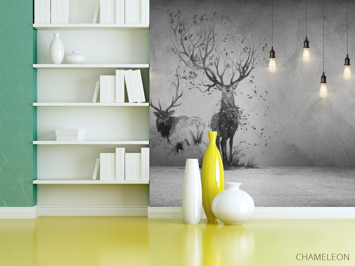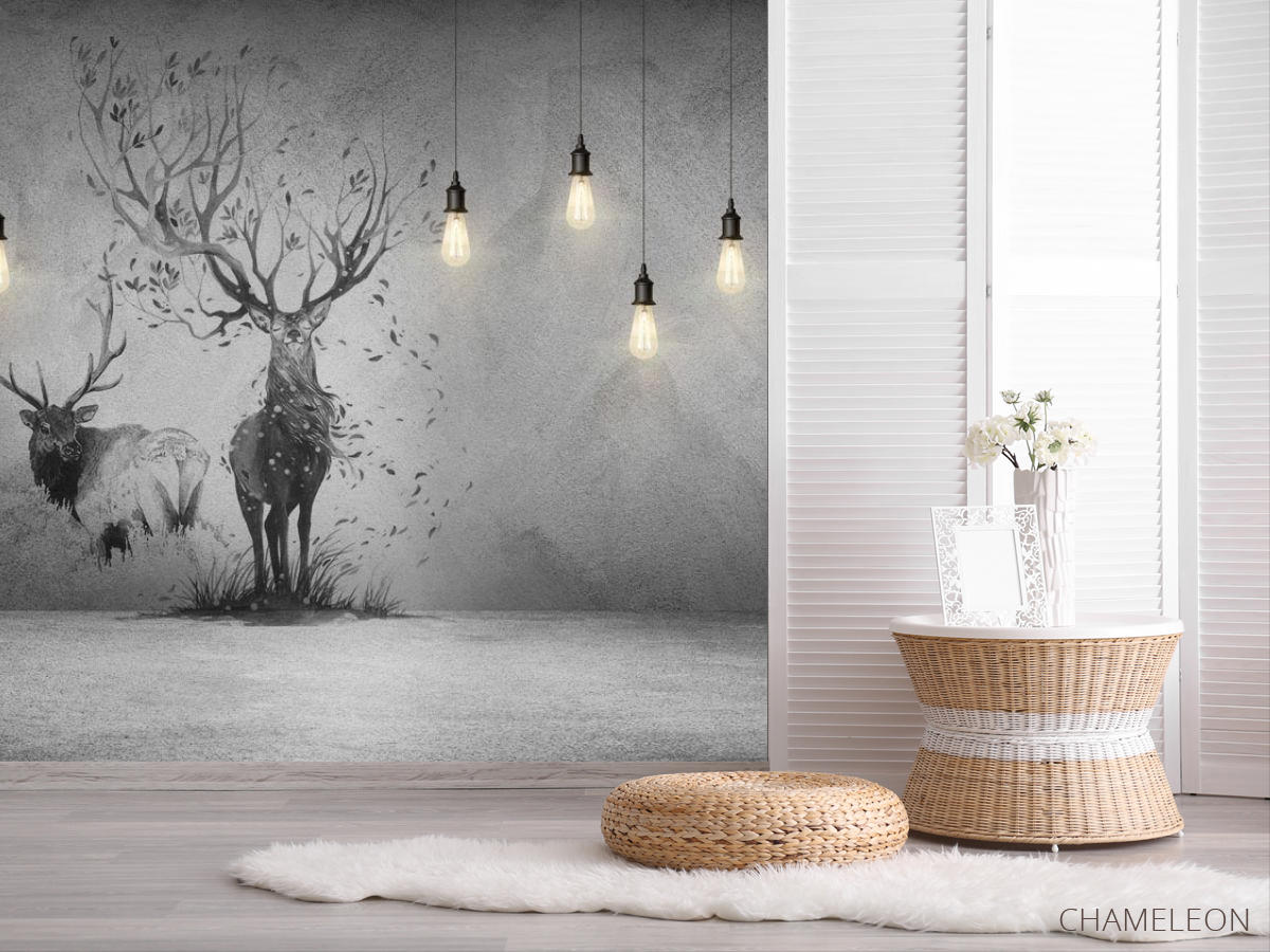 Фотошпалери Стіна з лампами і оленем, (арт. 23817) - купити в інтернет-магазині Chameleon