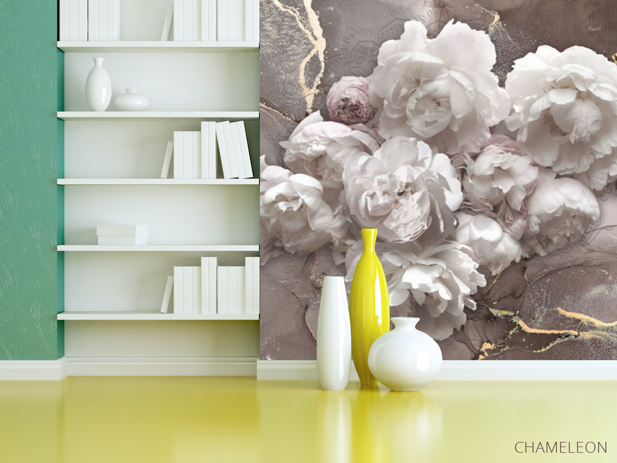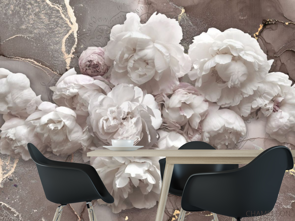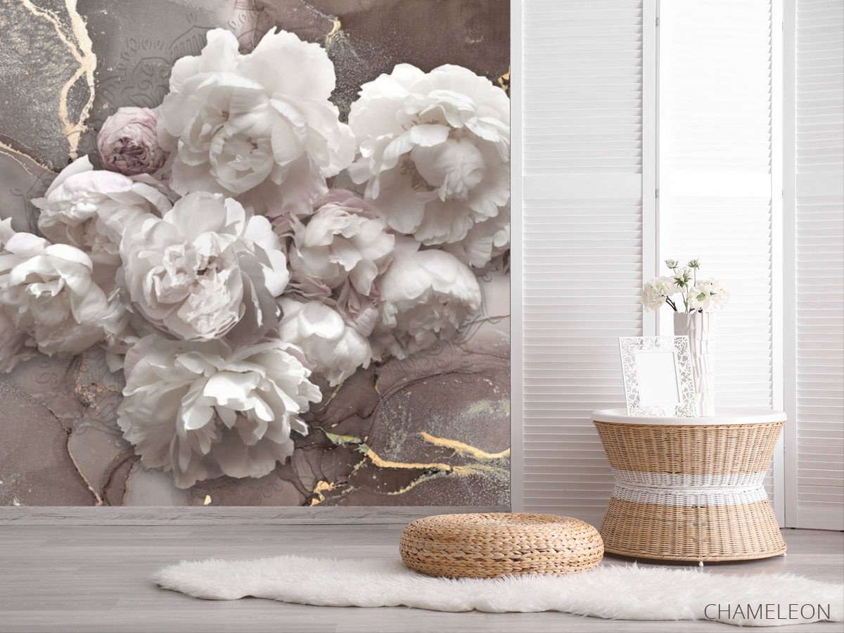 Фотошпалери півонії з золотом, (арт. 24012g) - купити в інтернет-магазині Chameleon