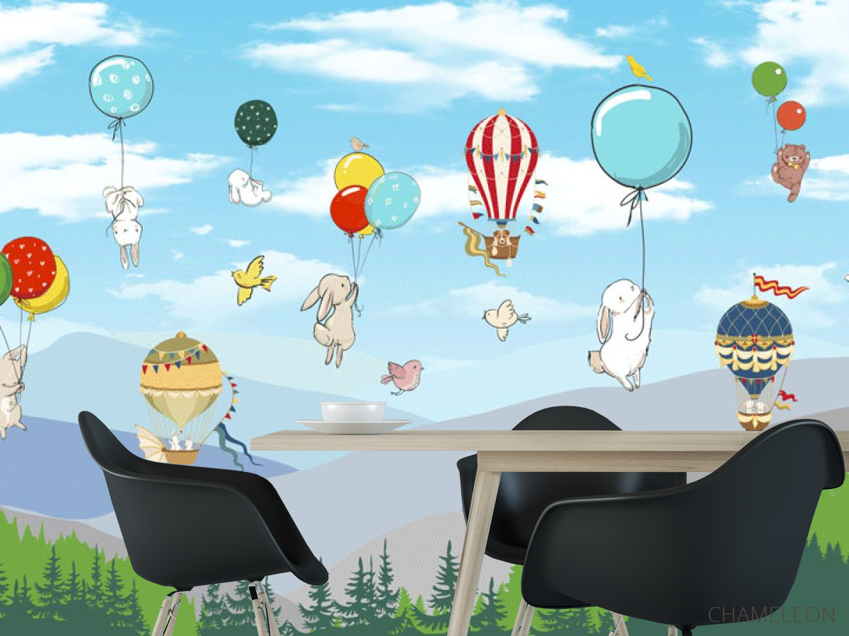 Фотошпалери Звірі на повітряних кульках, (арт. 24108) - купити в інтернет-магазині Chameleon
