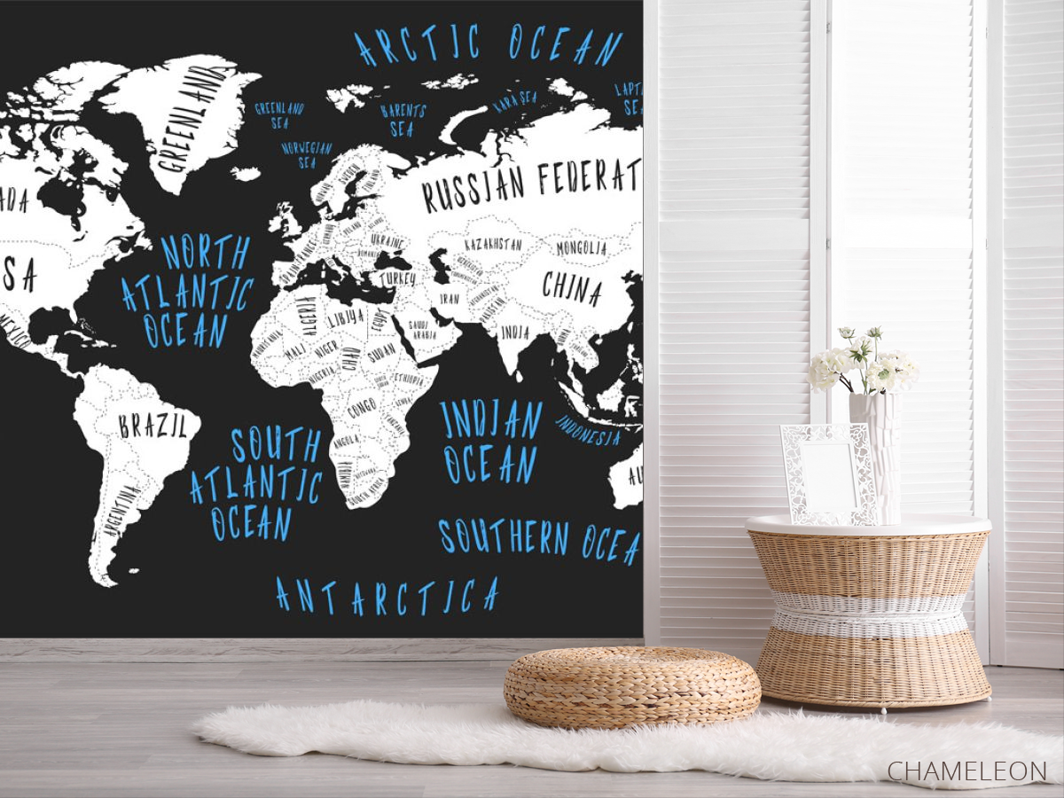 Фотошпалери карта світу є дуже хорошим вибором як для будинку (в вітальню, робочий кабінет або кухню), так і для інших будівель (в школу, ресторан або салон краси). Вони виглядають розкішно, мають стильний дизайн і відмінно підходять під будь-яке оформлення кімнати. Сучасні фотошпалери на стіну виробляються з надійного матеріалу, який не псується і не дряпається. Зображення - це повністю безпечна фарба, яка не викликає алергії, а також залишається красивим протягом багатьох років. Ви можете впевнено використовувати шпалери, які прикрасять будь-яке приміщення. Купити стильні і оригінальні фотошпалери з картою світу можна в інтернет-магазині Chameleons.