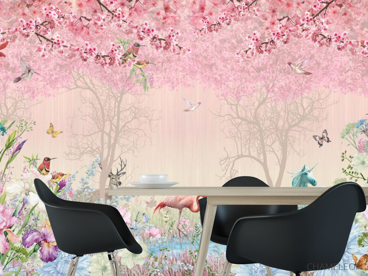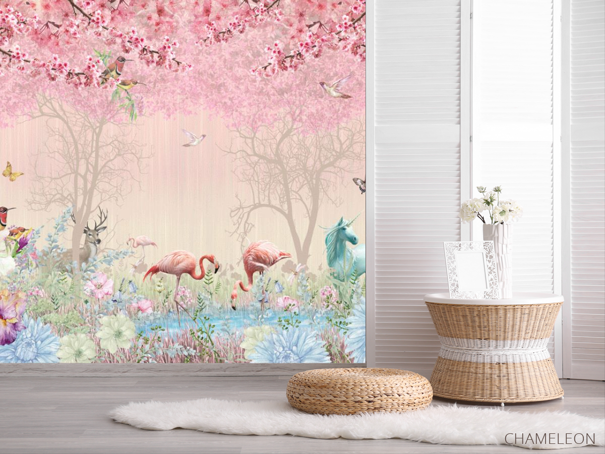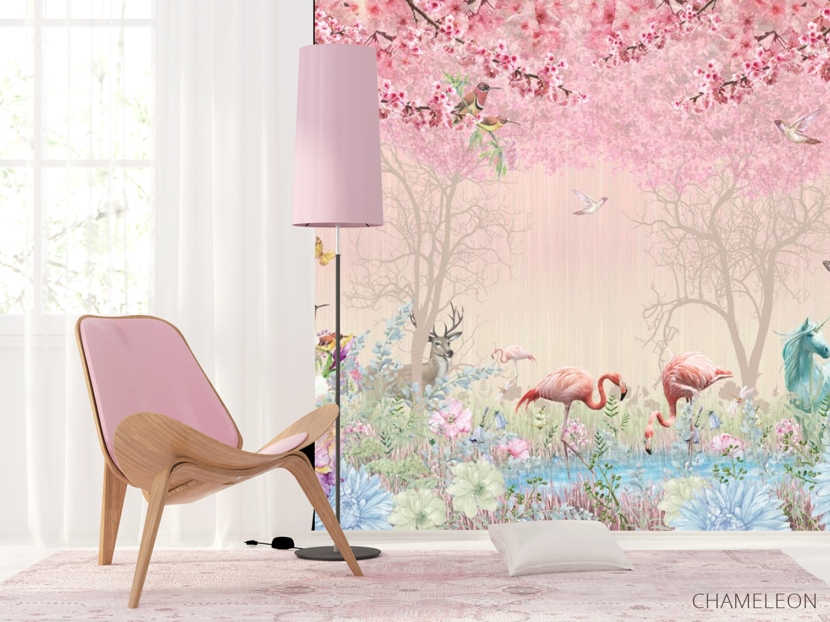 Фотошпалери Рожеві фламінго в райському саду, (арт. 24178) - купити в інтернет-магазині Chameleon