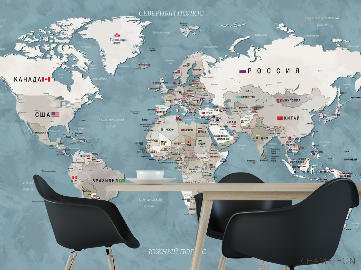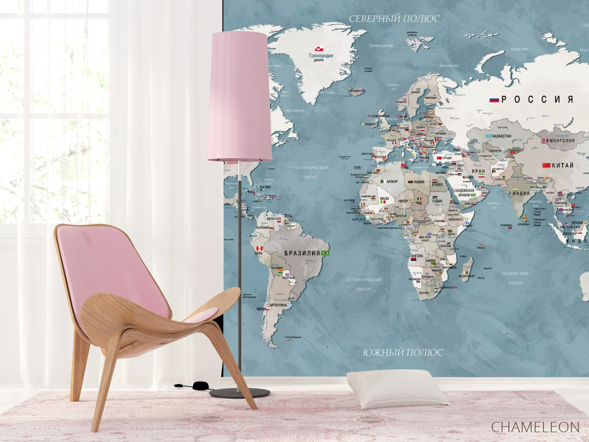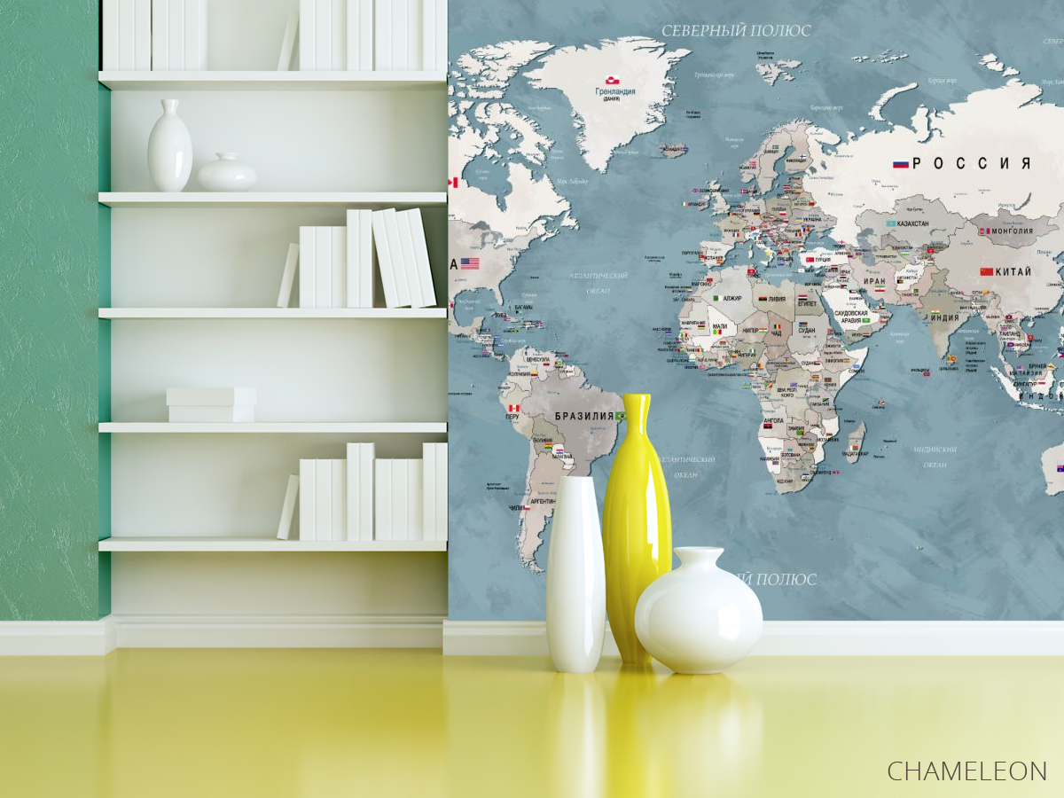 Фотошпалери карта світу є дуже хорошим вибором як для будинку (в вітальню, робочий кабінет або кухню), так і для інших будівель (в школу, ресторан або салон краси). Вони виглядають розкішно, мають стильний дизайн і відмінно підходять під будь-яке оформлення кімнати. Сучасні фотошпалери на стіну виробляються з надійного матеріалу, який не псується і не дряпається. Зображення - це повністю безпечна фарба, яка не викликає алергії, а також залишається красивим протягом багатьох років. Ви можете впевнено використовувати шпалери, які прикрасять будь-яке приміщення. Купити стильні і оригінальні фотошпалери з картою світу можна в інтернет-магазині Chameleons.