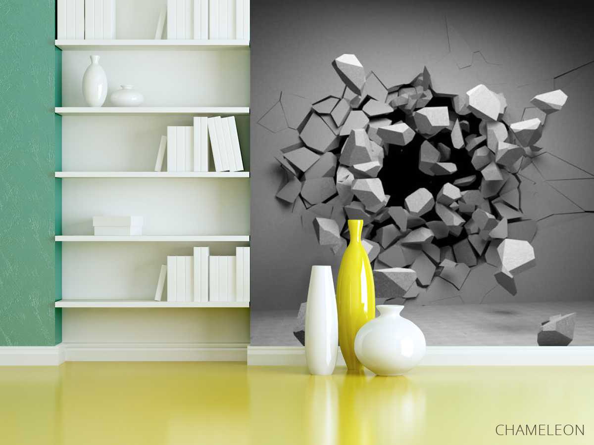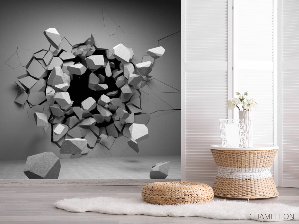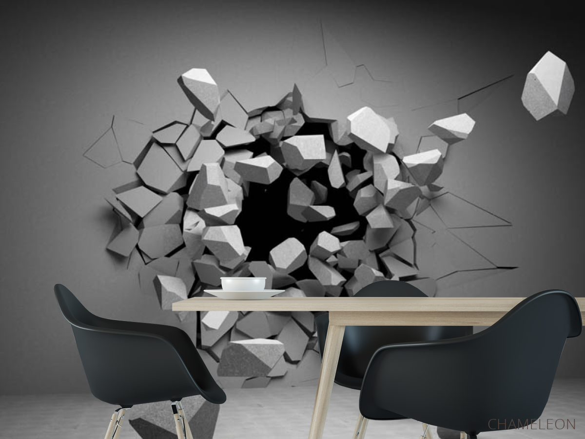 Фотошпалери камені вилітають зі стіни