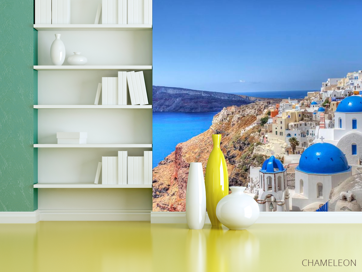 Санторіні - одне з тих самих місць в Греції, яке дізнається кожен. Цей Біло-синій Острів надихає і викликає захват. Фотошпалери Греція - це зображення унікальної старовинної архітектури на узбережжі найчистішої води. Це зображення стане невід'ємною частиною вашого інтер'єру, підкреслять вишуканий смак і додасть йому особливого шарму і оригінальності. Фотошпалери виготовлені з матеріалів високої якості, з паперовою або флізеліновою основою. Вони стійкі до вигорання і невеликих пошкоджень. Зображення дуже барвисте, яскраве і чітке. Фарба не вигоряє на сонці, не викликає алергію і не виділяє токсичних речовин. Фотошпалери Греція ідеально підійдуть для будь-якого приміщення: спальня, вітальня, кухня. Додайте частинку сонячної Греції в ваш будинок.