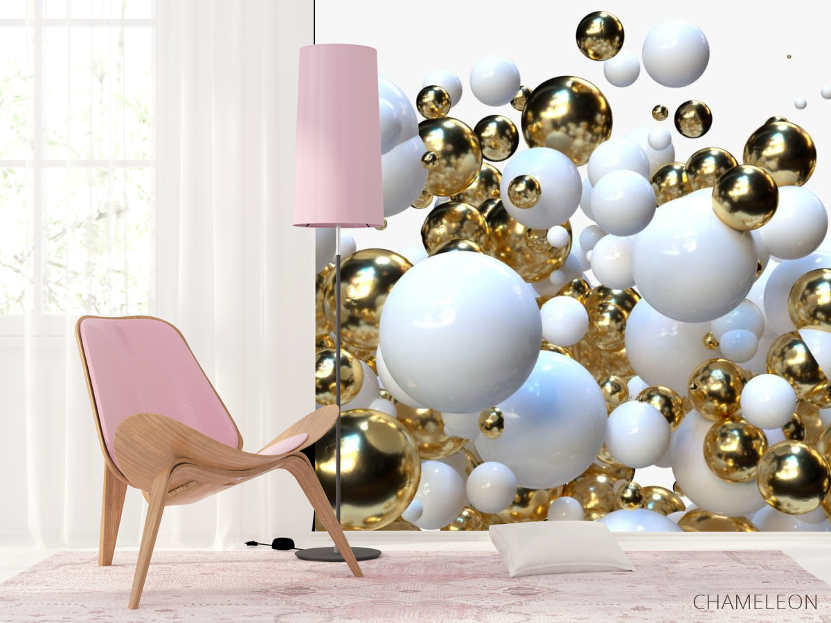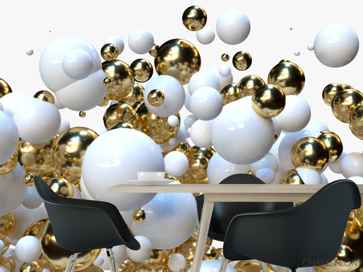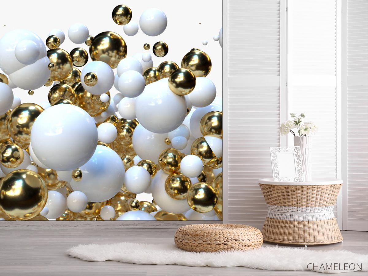 Фотошпалери Біло-золоті кулі 3д, (арт. 24599) - купити в інтернет-магазині Chameleon