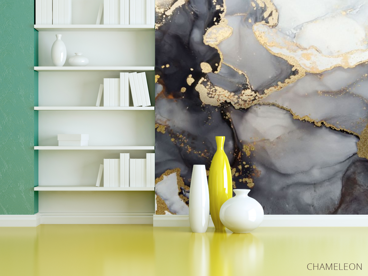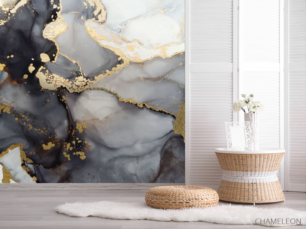 Фотошпалери чб флюїд з золотом, (арт. 24617g) - купити в інтернет-магазині Chameleon