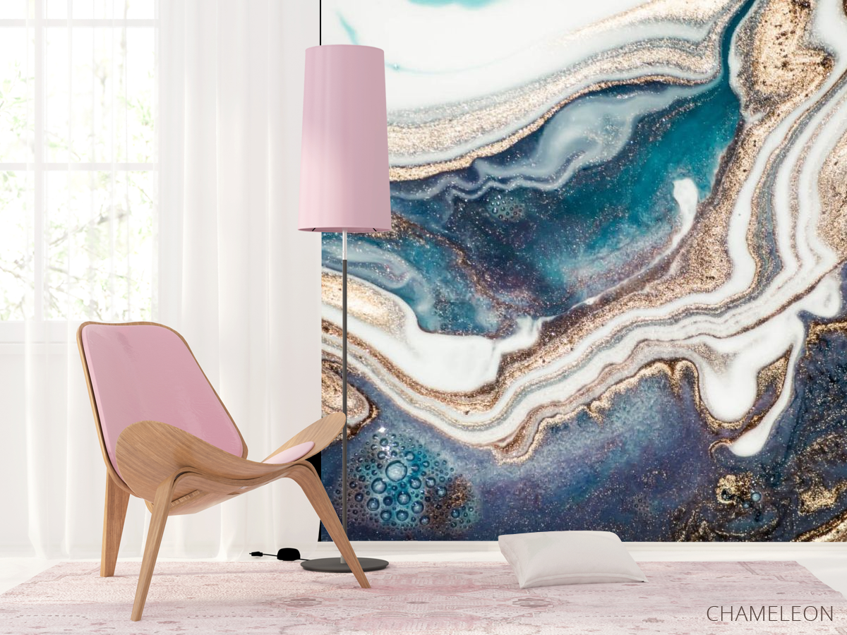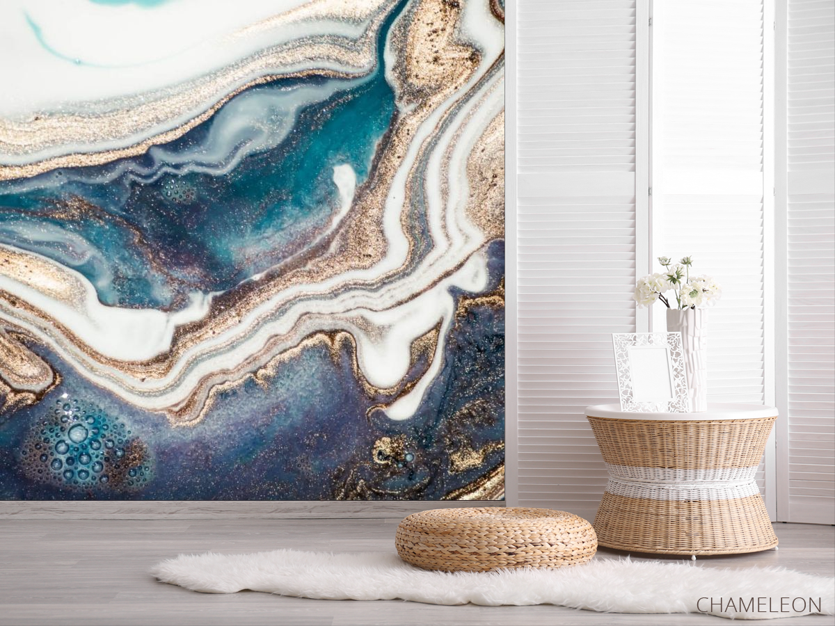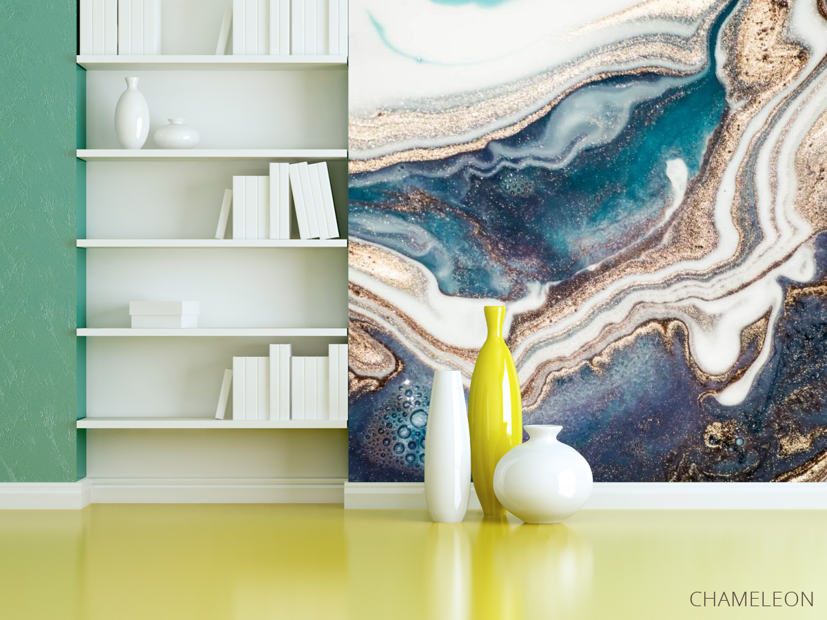 Фотошпалери Бірюзовий флюїд з золотом, (арт. 24748) - купити в інтернет-магазині Chameleon