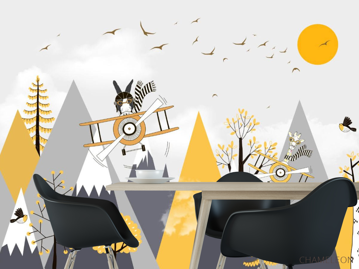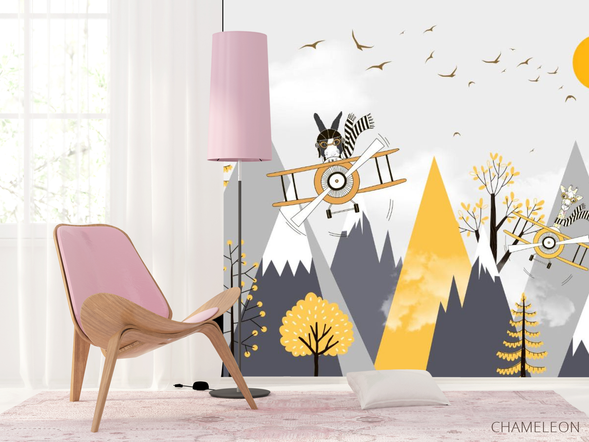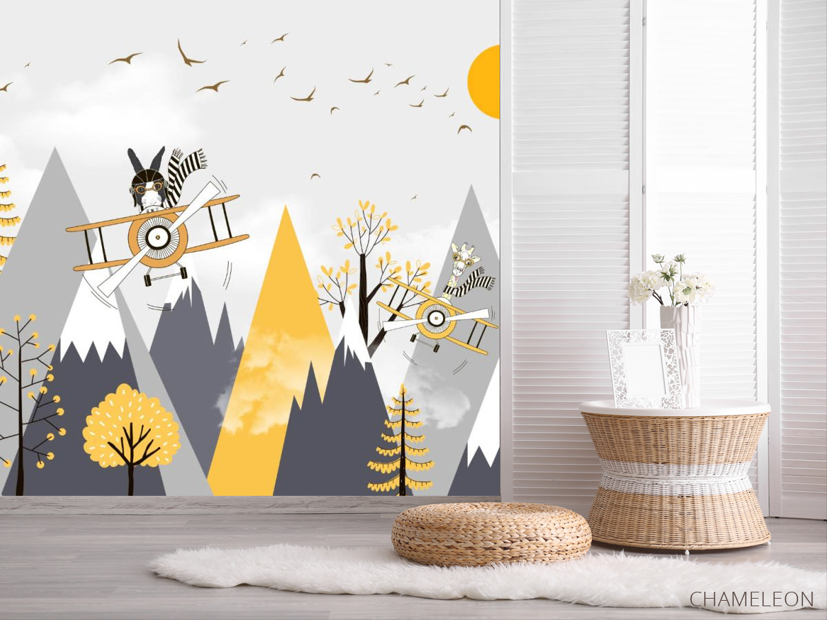 Фотошпалери Гори дитячі жовто-сірі 24784