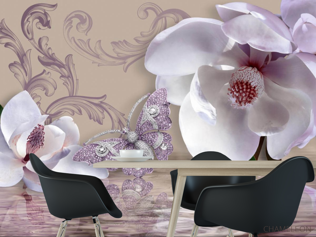 Фотошпалери 3д магнолії і брошка, (арт. 24924) - купити в інтернет-магазині Chameleon