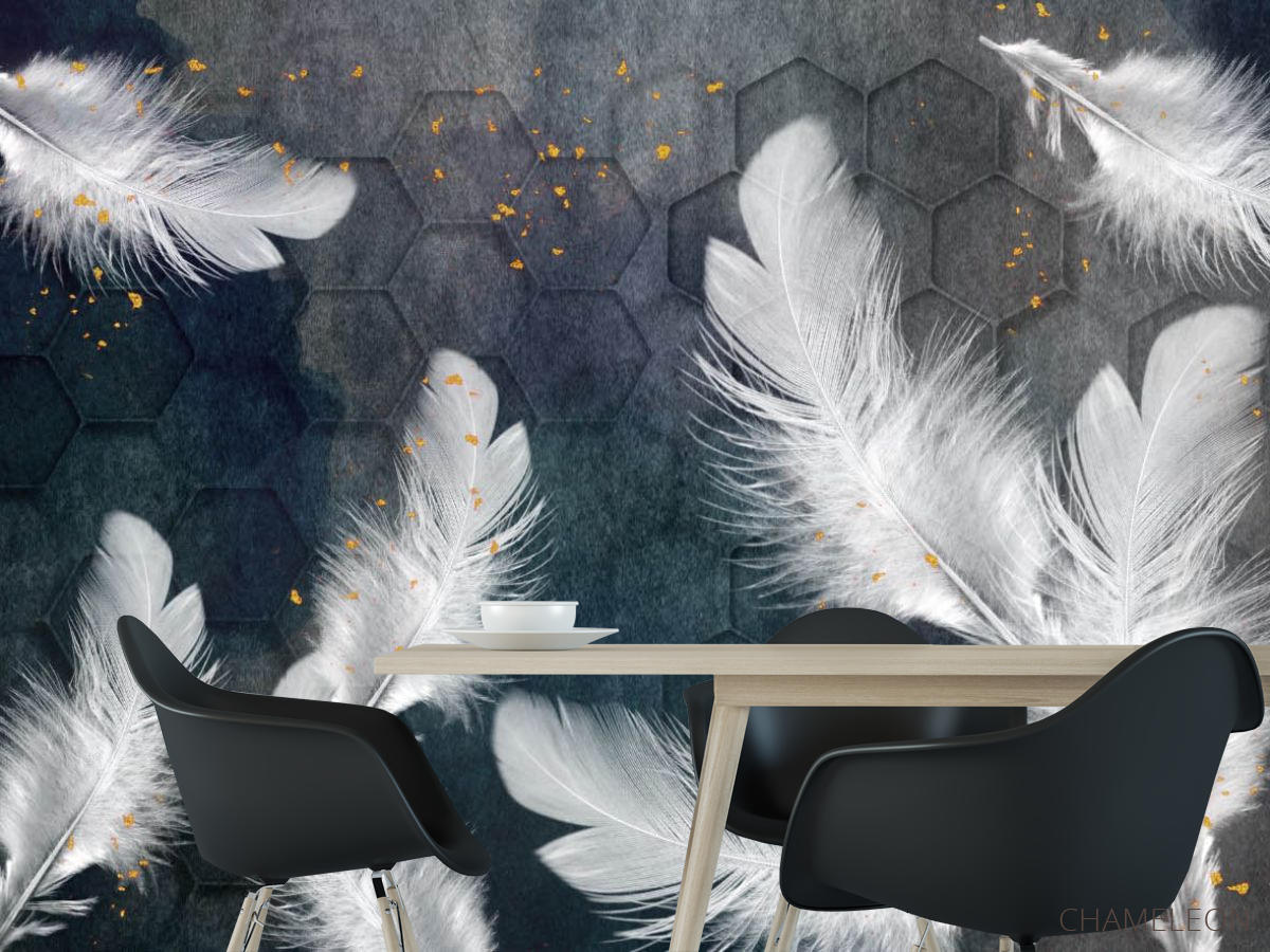 Фотошпалери Білі пір'я з золотом