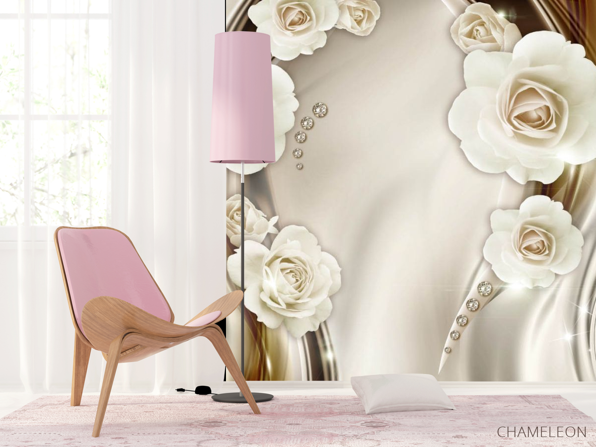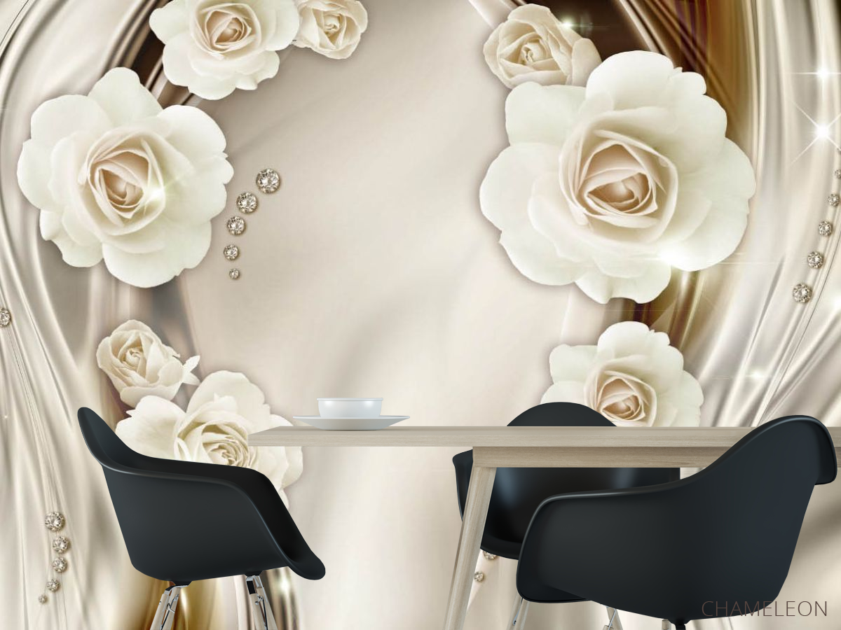 Фотошпалери Білі 3д квіти з камінням, (арт. 24966) - купити в інтернет-магазині Chameleon