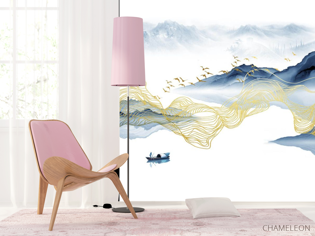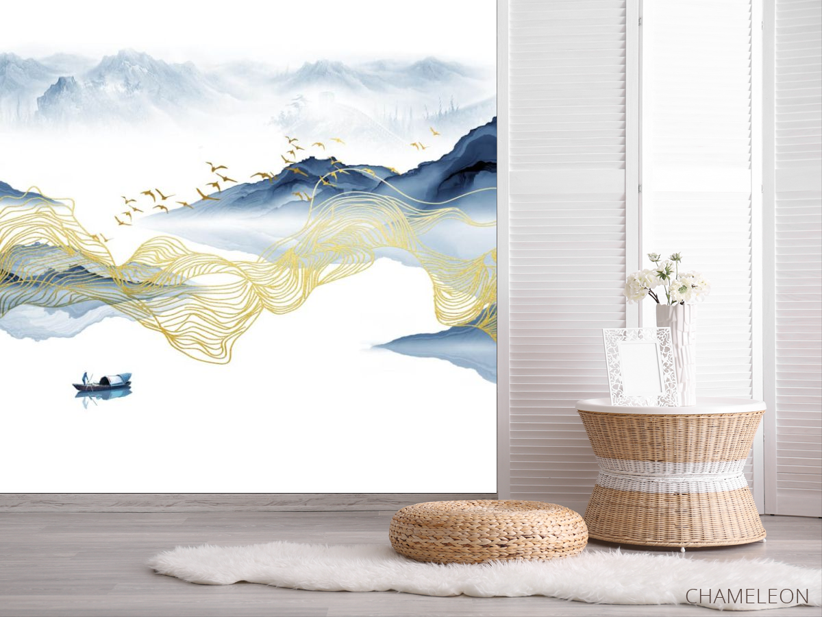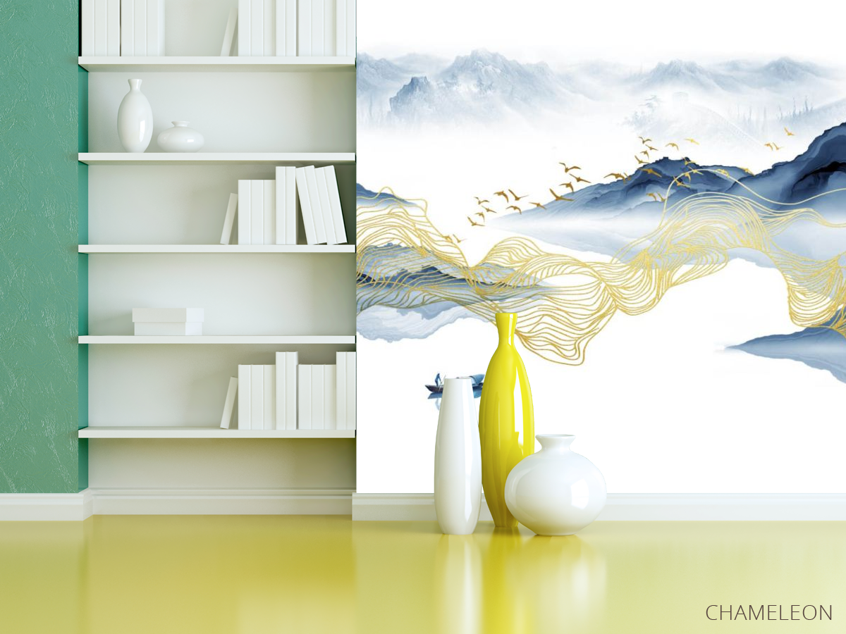 Фотошпалери Хвилі з синій і золотий абстракції, (арт. 24982) - купити в інтернет-магазині Chameleon